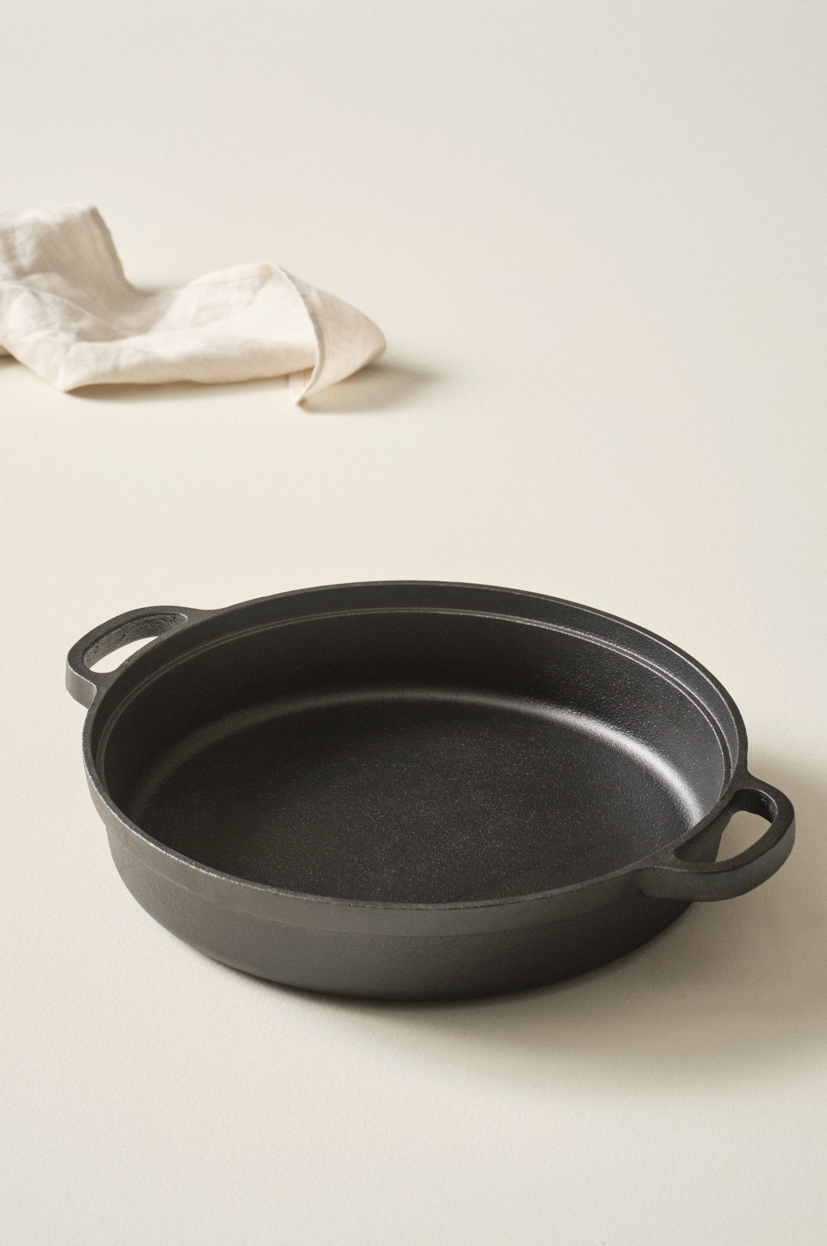 Die rustikale Gusseisenpfanne ist ein wunderbarer Blickfang auf der gedeckten Tafel und hält das Essen länger warm. Die Oberfläche wurde ausschließlich mit pflanzlichem Öl behandelt.