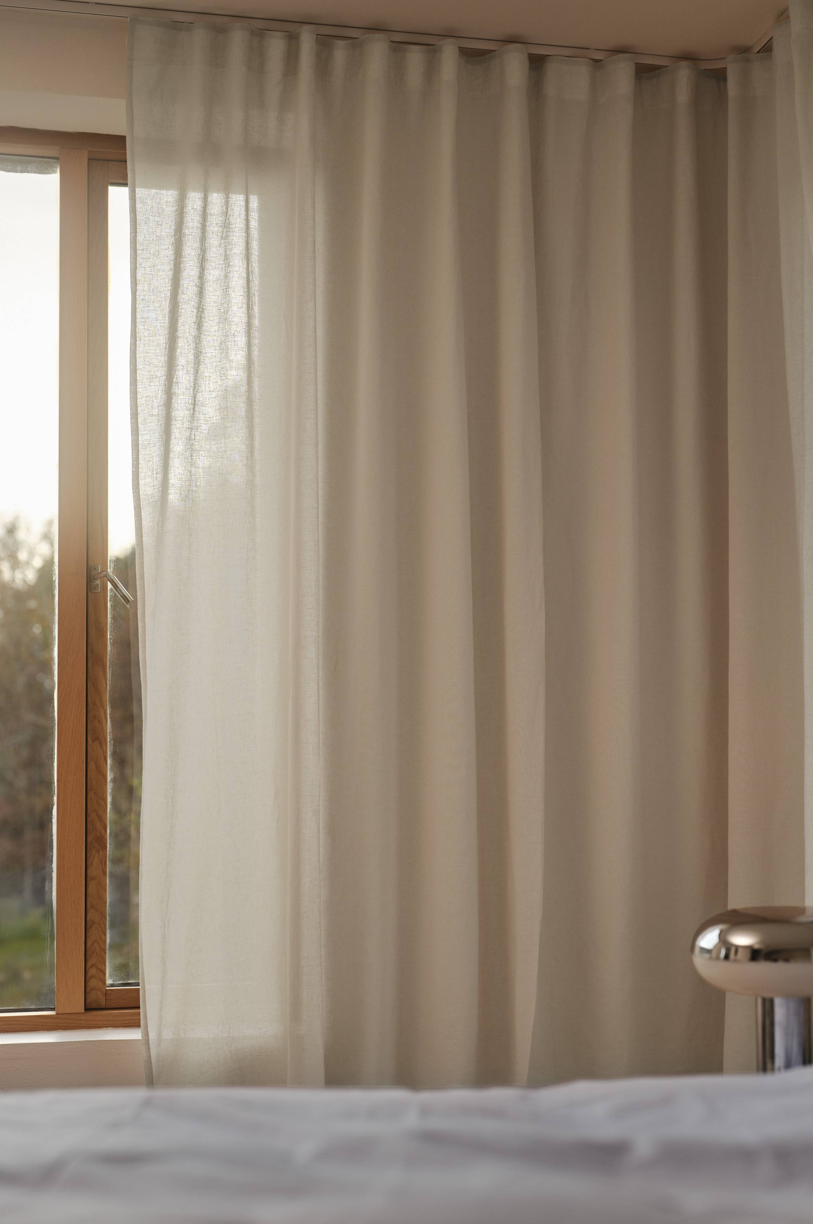 Leinen ist ein feines Naturmaterial, das mit der Zeit weicher und geschmeidiger wird. Ein Tipp, um einen besonders weichen und schönen Fall zu erhalten, ist die Verwendung eines Dampfers beim Aufhängen der Leinenvorhänge. Der Dampfer kombiniert Hitze mit Dampf und macht die Vorhänge flexibler.