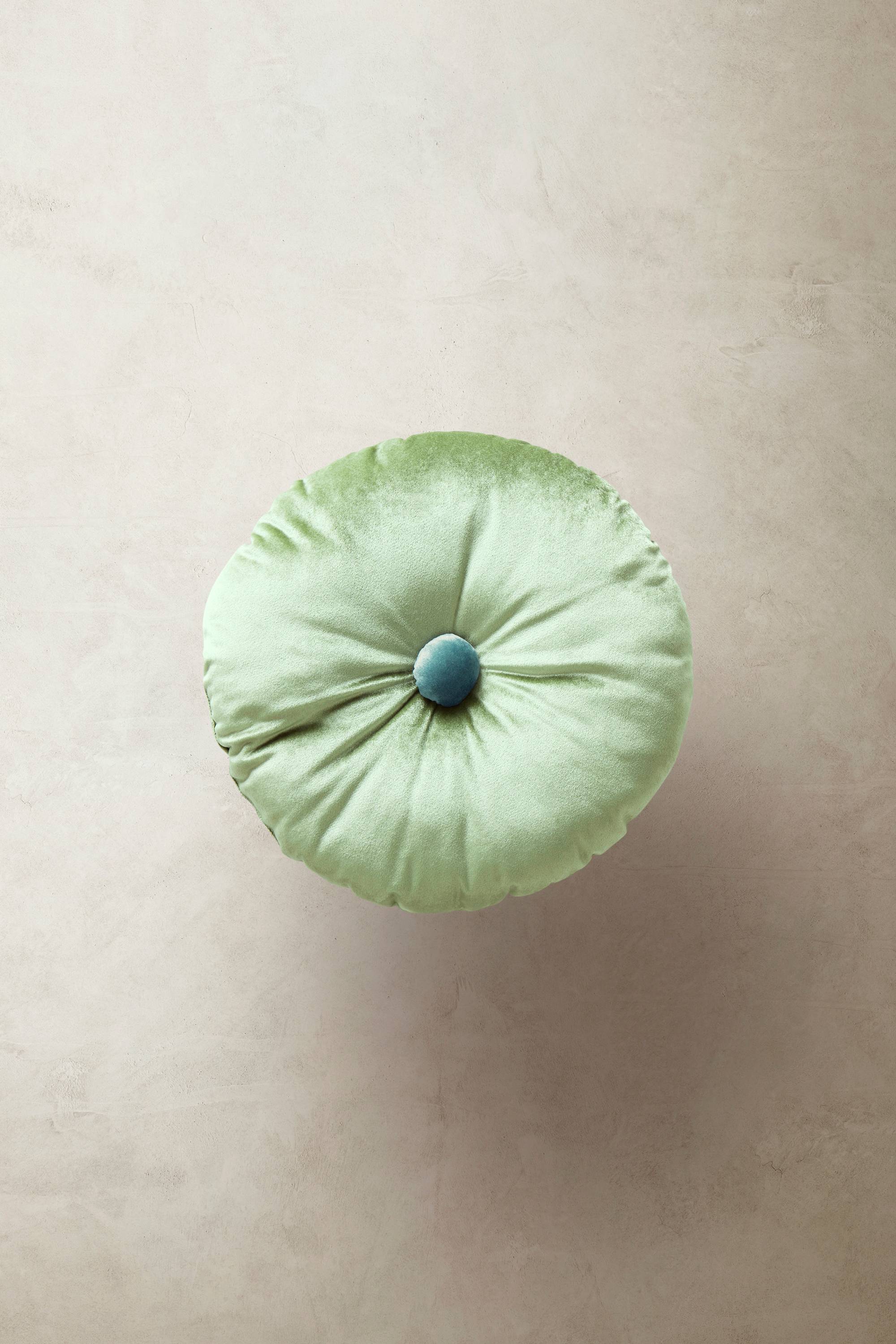 1er-Pack rundes Samtkissen mit einem großen samtbezogenen Knopf auf Vorder- und Rückseite. Das Kissen hat eine weiche Füllung und muntere Farben, die sich schön kombinieren lassen.