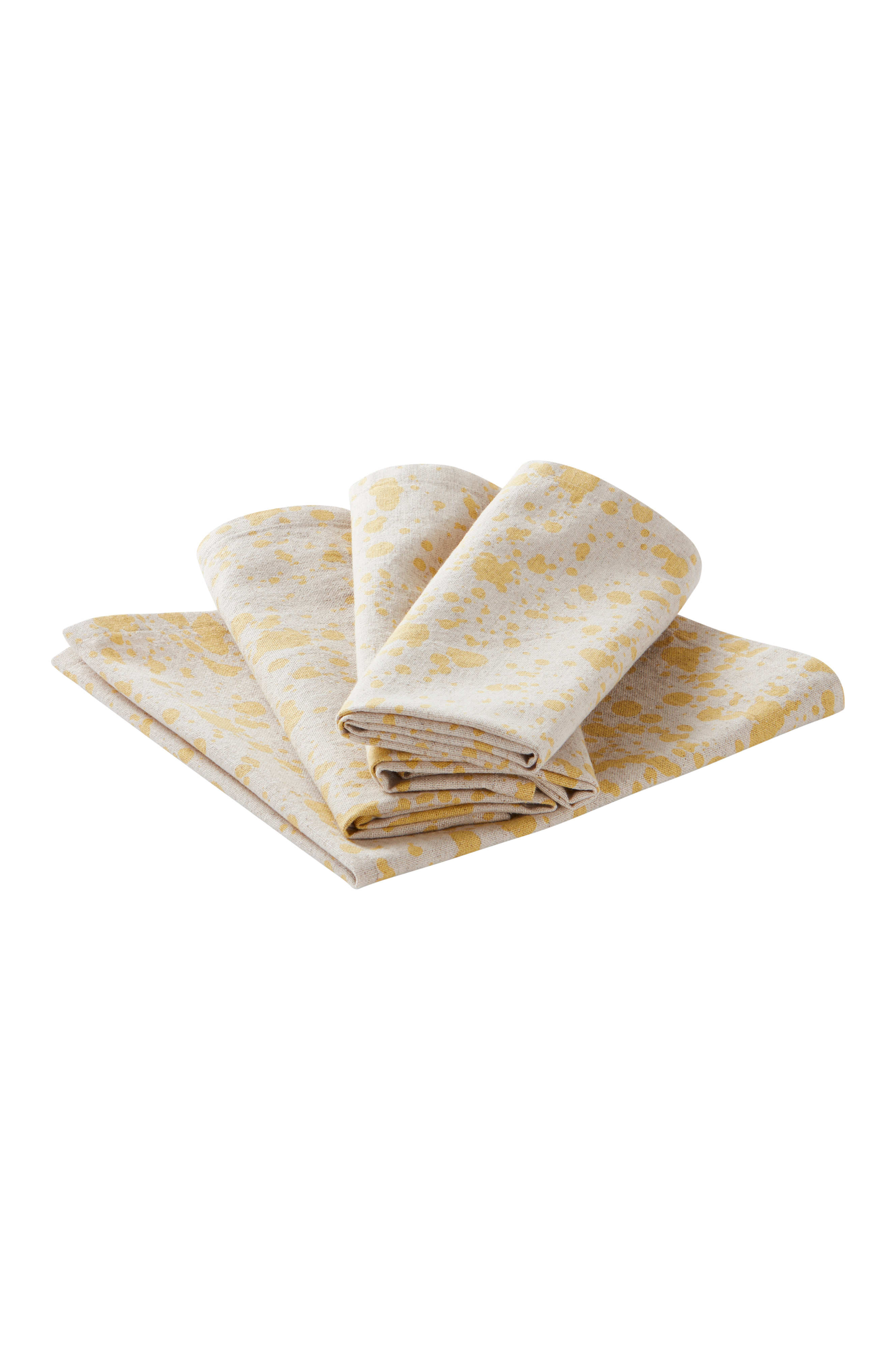 4er-Pack Servietten aus einer Baumwollmischung mit Leinenanteil, der dem Stoff Festigkeit verleiht. Diese Servietten haben ein aufgedrucktes, lebhaftes Spritzmuster.