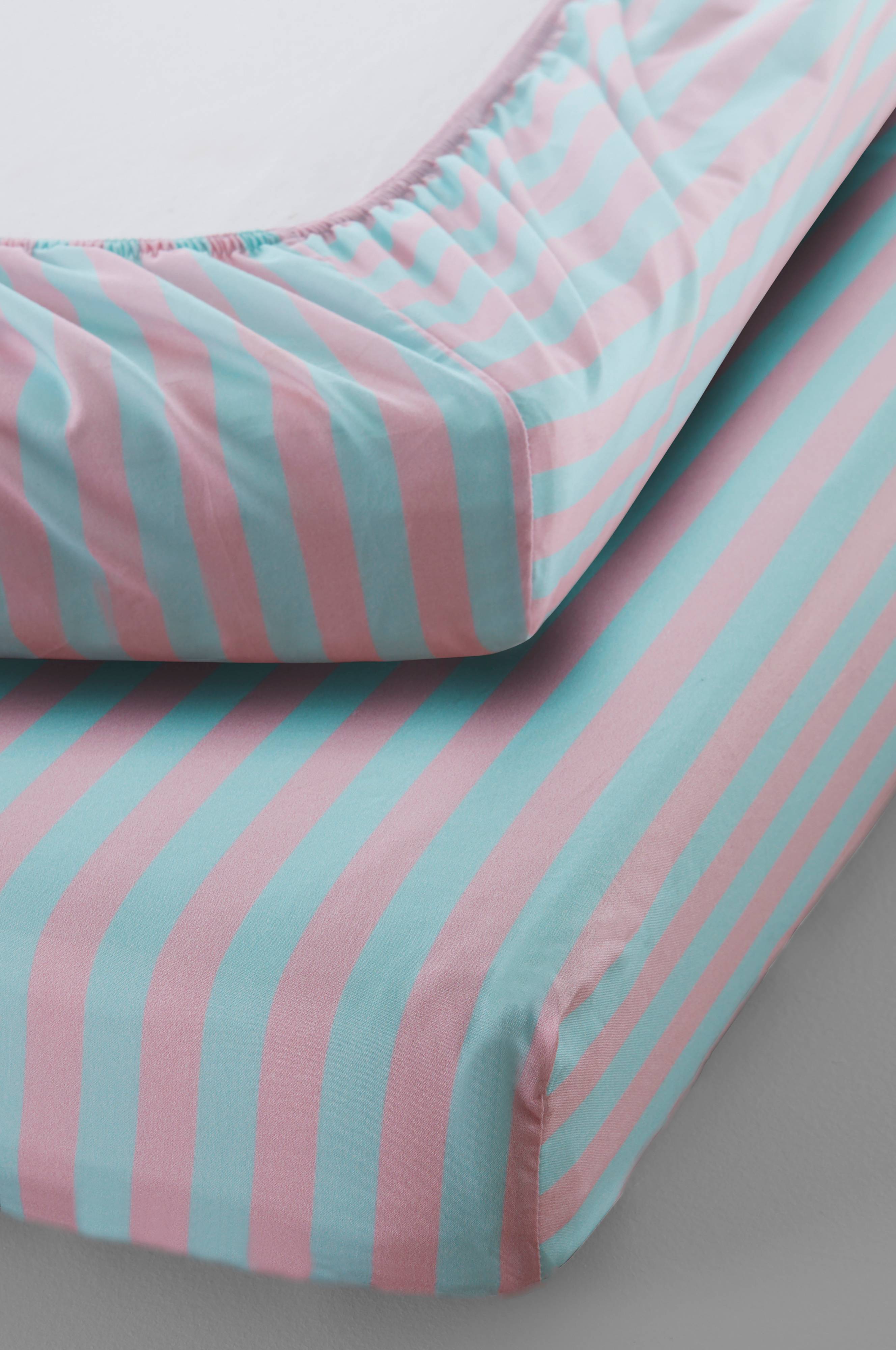 Ein Spannbettlaken aus Bio-Baumwolle mit Gummizügen in den Ecken. Dank Gummizug schmiegt sich das Laken perfekt um die Matratze. Blockstreifen sind im Schlafzimmer immer angesagt und Bio-Baumwolle fühlt sich angenehm kühl auf der Haut an. Dieses Spannbettlaken ist außerdem stückgewaschen und überzeugt durch seine besonders weiche Haptik. Fadendichte 144 TC. (Mit der Fadendichte bzw. dem TC-Wert (Thread Count) wird die Anzahl der Fäden in Kette und Schuss pro Quadratzoll angegeben. Je höher die Fadendichte, desto höher die Qualität.)