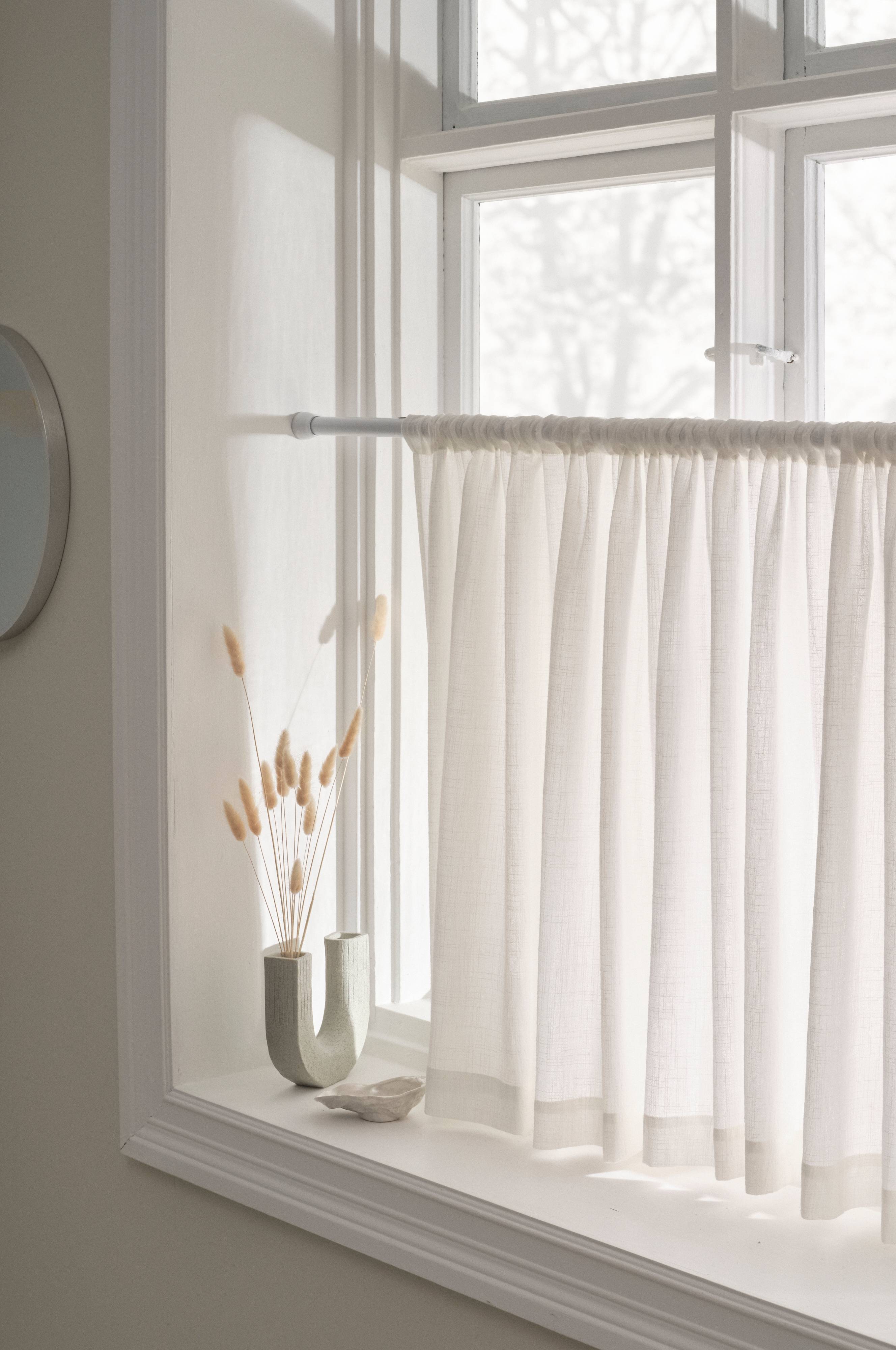 Ein Cafévorhang aus luftigem Stoff mit einem melierten Effekt. Der Stoff ist aus Baumwolle gewebt und hat einen angenehmen, entspannten Griff. Der LUNI Cafévorhang hat oben einen genähten Kanal und wird an einer Vorhangstange unten an deinem Fenster aufgehängt. So bietet er Privatsphäre, während das Licht über den Vorhang hereinkommt, wunderbar, um immer den Himmel zu sehen.
