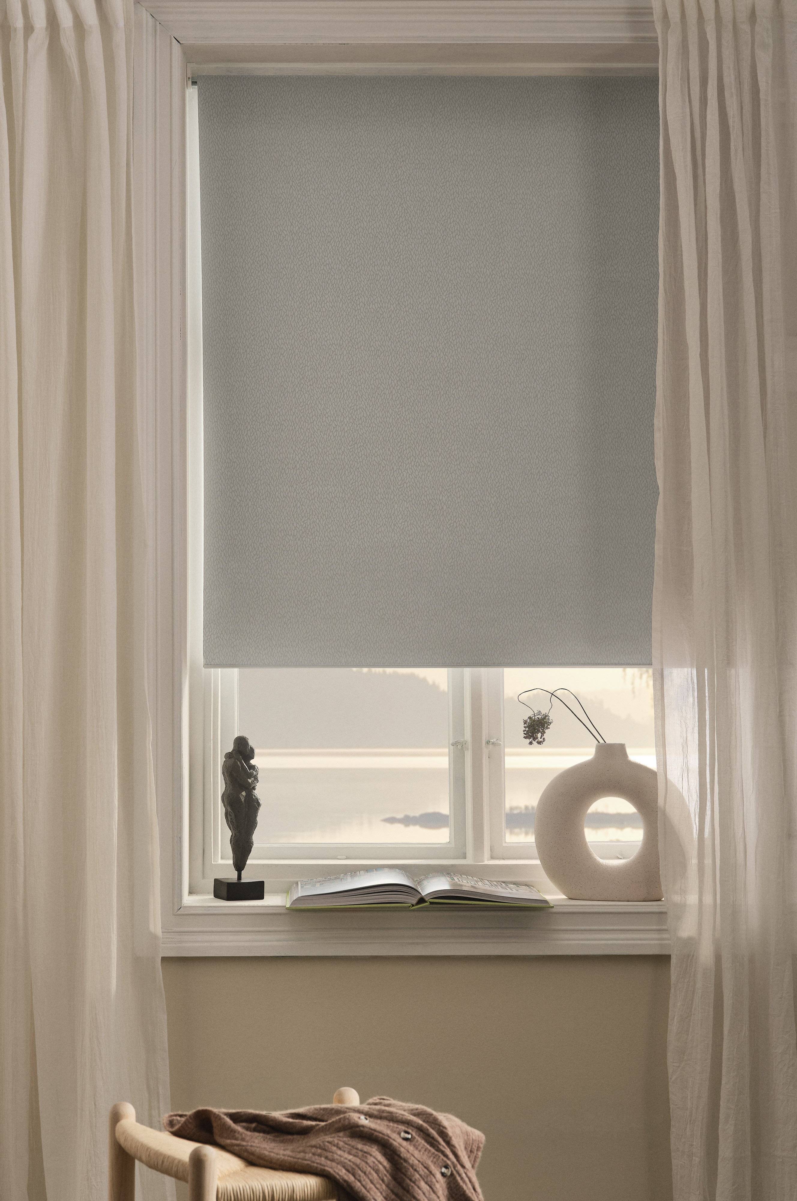 Sonnenschutz-/Verdunkelungsvorhang (Funktionsvorhang); der Polyester besteht zur Hälfte aus recyceltem Material. Der Stoff hält das Licht ab und verdunkelt Schlafzimmer, Fernseh- oder Kinderzimmer. Dieses Rollo hat ein Ton in Ton gehaltenes, dezentes Muster. Die Rückseite ist lichtundurchlässig beschichtet. Das Rollo wird mit Hilfe einer kleinen Kugelkette an der Seite hoch- und heruntergelassen. Inklusive Befestigungselemente. Einfache Montage. Inklusive Montageanleitung.