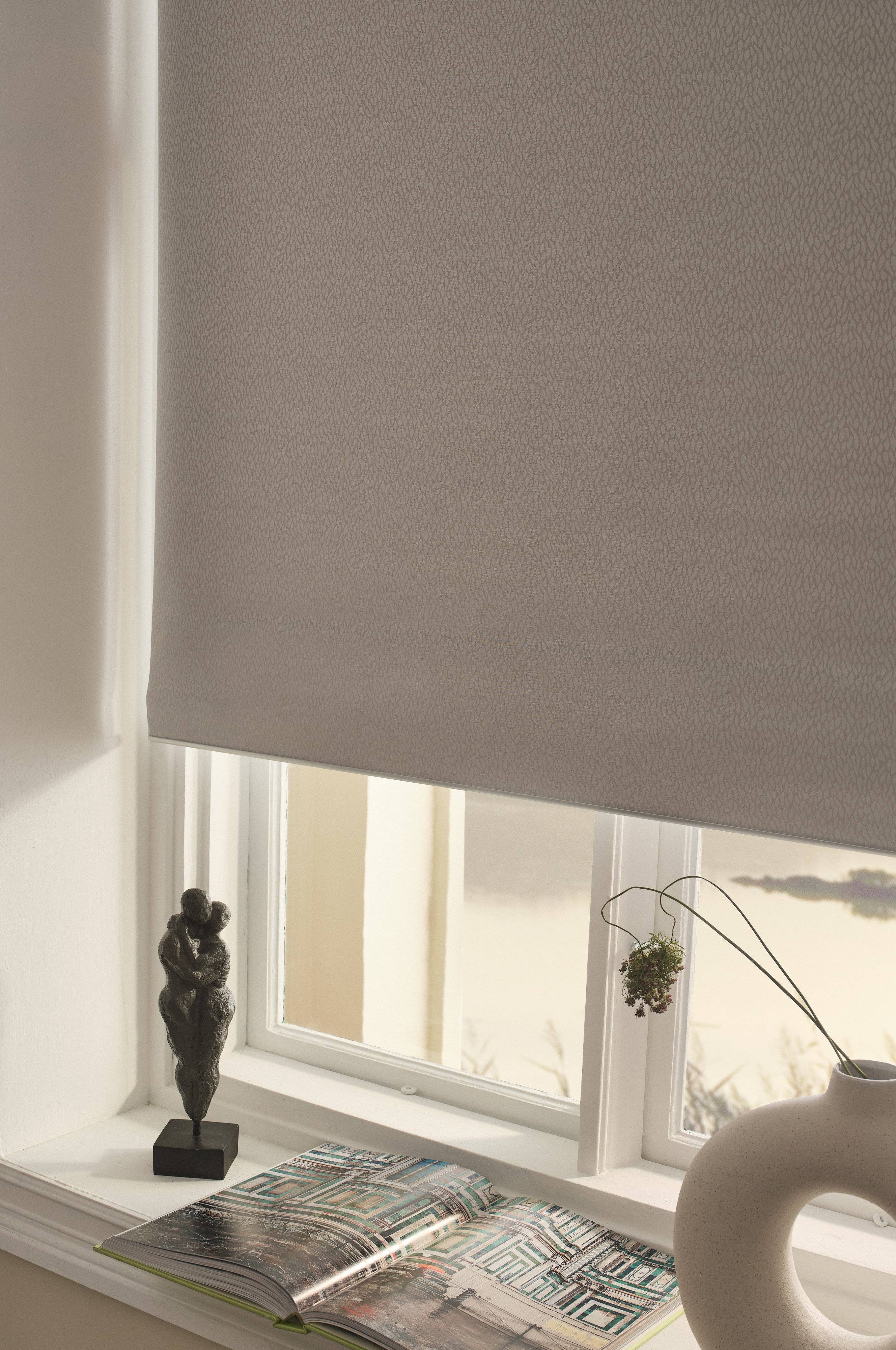 Sonnenschutz-/Verdunkelungsvorhang (Funktionsvorhang); der Polyester besteht zur Hälfte aus recyceltem Material. Der Stoff hält das Licht ab und verdunkelt Schlafzimmer, Fernseh- oder Kinderzimmer. Dieses Rollo hat ein Ton in Ton gehaltenes, dezentes Muster. Die Rückseite ist lichtundurchlässig beschichtet. Das Rollo wird mit Hilfe einer kleinen Kugelkette an der Seite hoch- und heruntergelassen. Inklusive Befestigungselemente. Einfache Montage. Inklusive Montageanleitung.