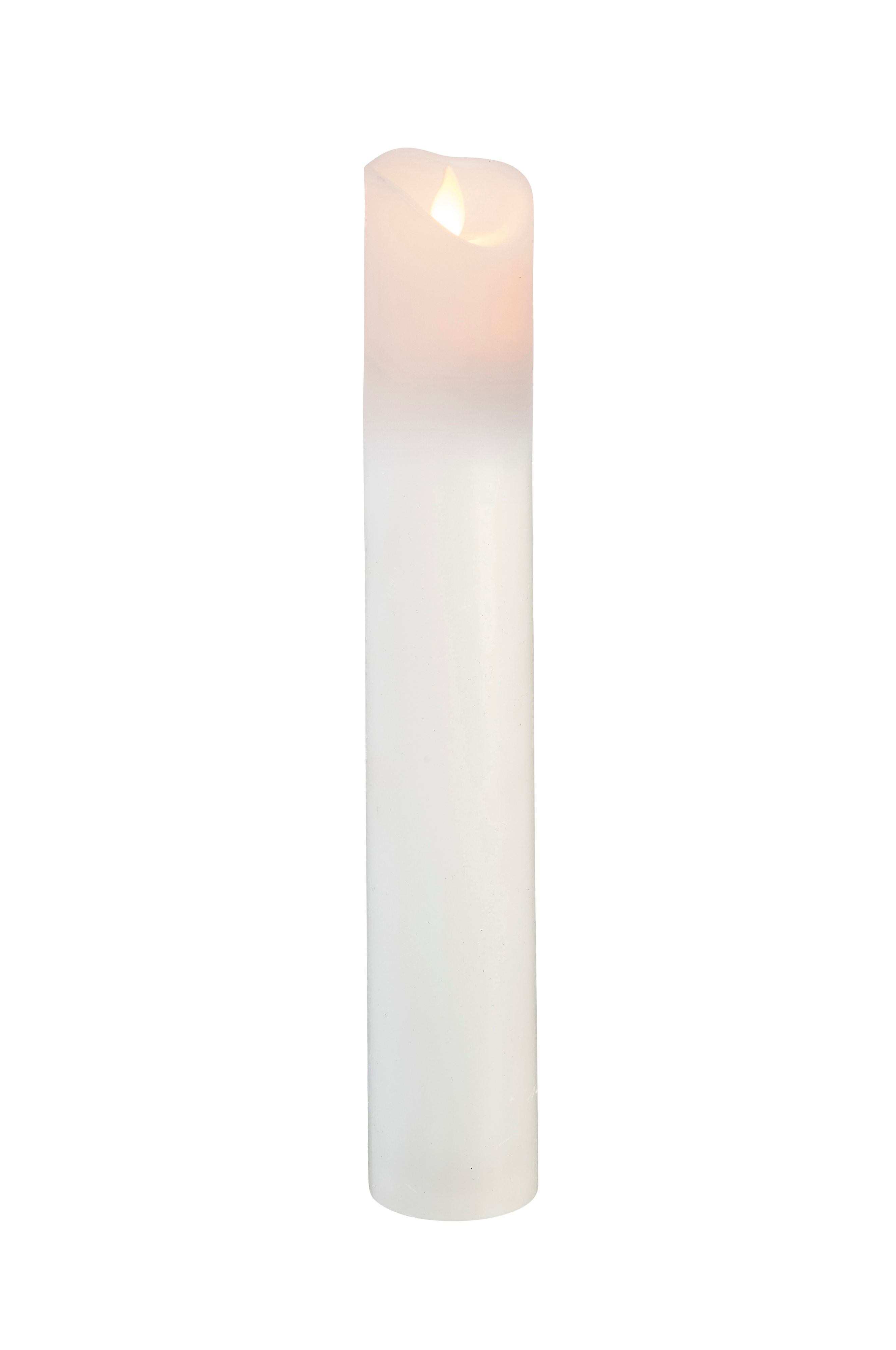 Eine wirklichkeitsgetreue Kerze in einer dünneren, längeren Variante mit flackerndem Schein, die ein behagliches Licht im Raum verbreitet. Dieses Modell ist batteriebetrieben und hat einen eingebauten Timer, der ein Einstellen der Leuchtzeit ermöglicht. 2 Batterien AA, nicht enthalten. Größe: 5x30x5 cm.