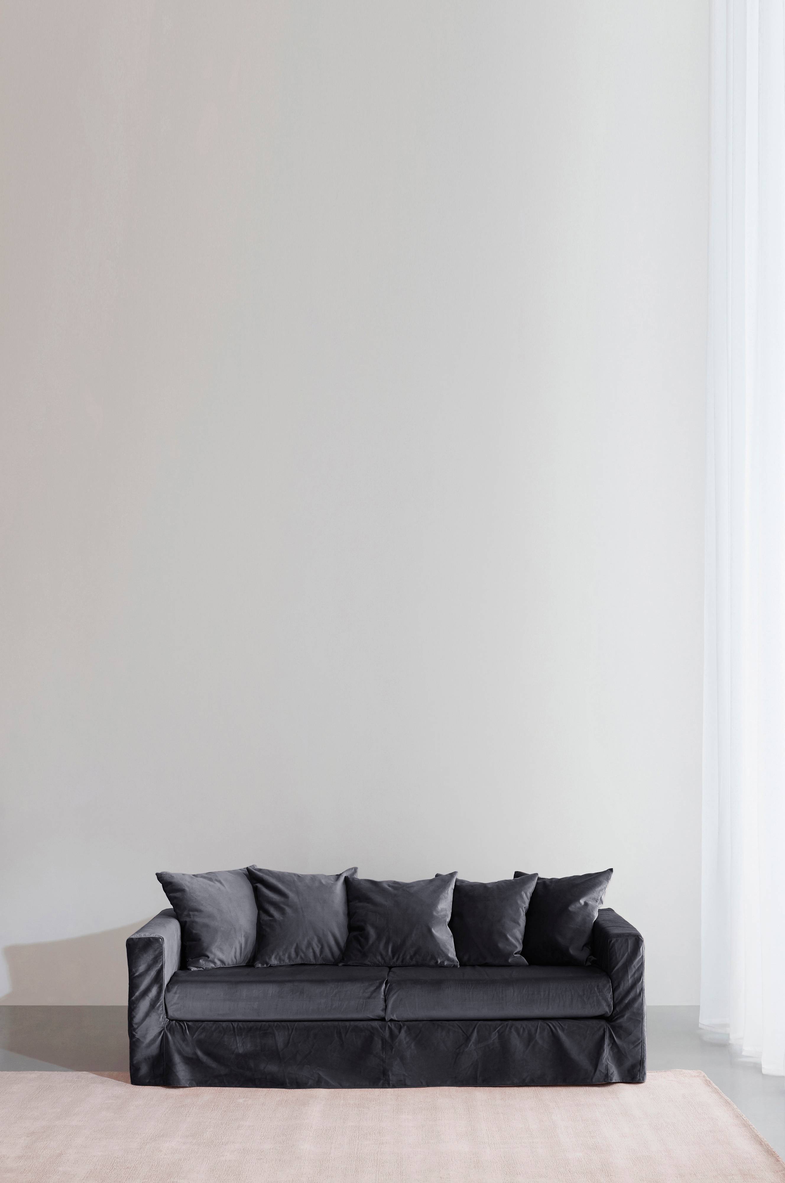 Großzügiges 3-Sitzer-Sofa mit fünf Rückenkissen, gefüllt mit Federn und Faserbällchen für höchsten Sitzkomfort. Falls es zu einem Malheur kommen sollte, ist der Bezug abnehm- und handwaschbar.