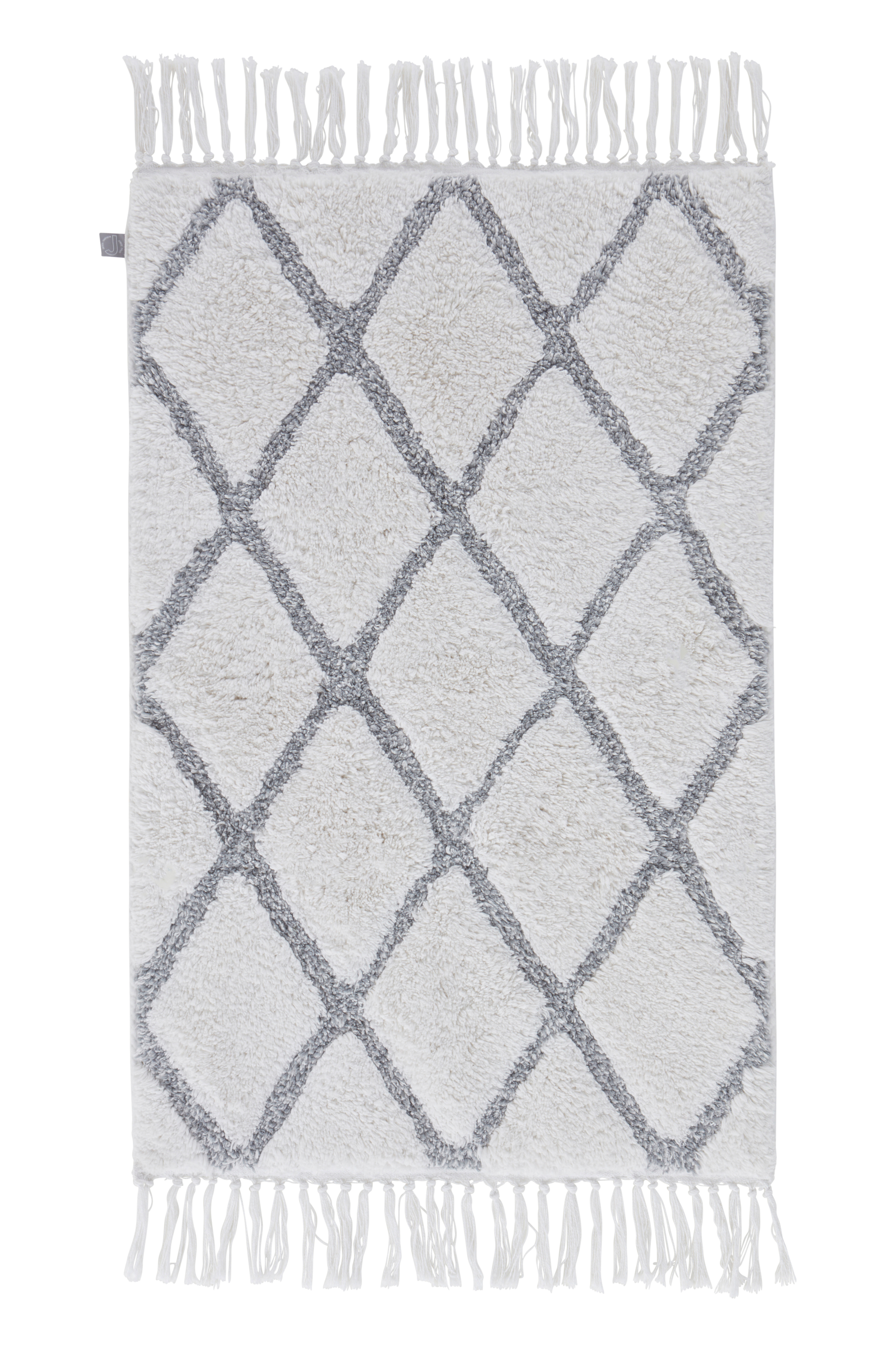 Weicher, getufteter Badteppich mit einer schönen Fransenkante an den kurzen Seiten. Dieser Teppich mit dem dekorativen Rautenmuster ist aus reiner Baumwolle gefertigt. Die Rückseite ist mit Latex besprüht, sodass der Teppich sicher und rutschfrei liegt.