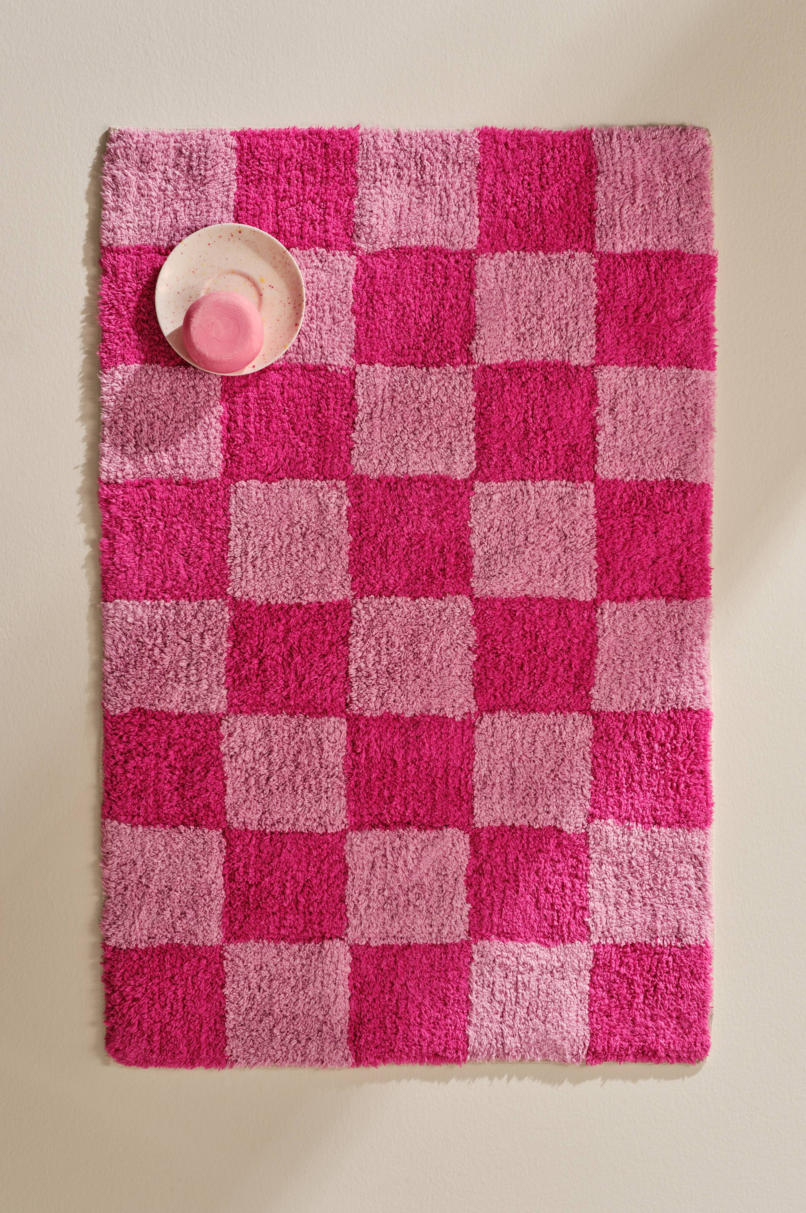 MELA ist eine getuftete Badezimmermatte mit einem Schachbrettmuster aus garngefärbten Quadraten. Der weiche und kuschelige Badteppich verleiht deinem Badezimmer eine warme Note. Die Rückseite mit Sprühlatex sorgt dafür, dass der Teppich fest an seinem Platz bleibt.