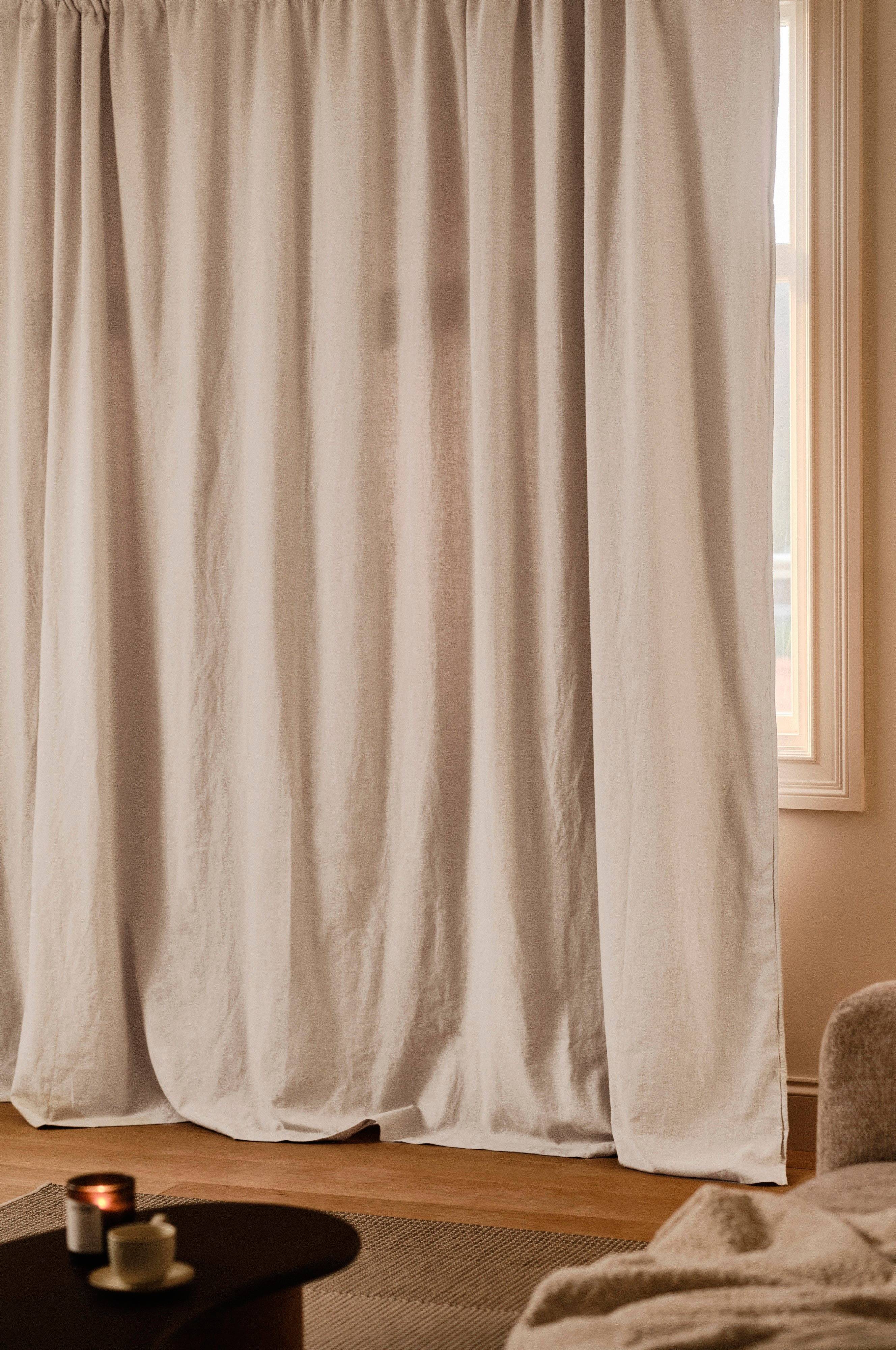 Die Verdunkelungsvorhänge von Melanie vereinen Stil und Funktionalität und verleihen jedem Raum einen modernen Touch. Mit einer eleganten Leinenvorderseite und einem Verdunkelungsfutter auf der Rückseite bieten diese Vorhänge eine optimale Lichtregulierung und verleihen dem Raum einen Hauch von Raffinesse. Das extrabreite Design macht sie perfekt für größere Fenster und sorgt für einen einheitlichen und luxuriösen Look. Die Mischung aus Textur und Zweckmäßigkeit sorgt in jedem Raum für Privatsphäre und Komfort mit einem modernen Flair.