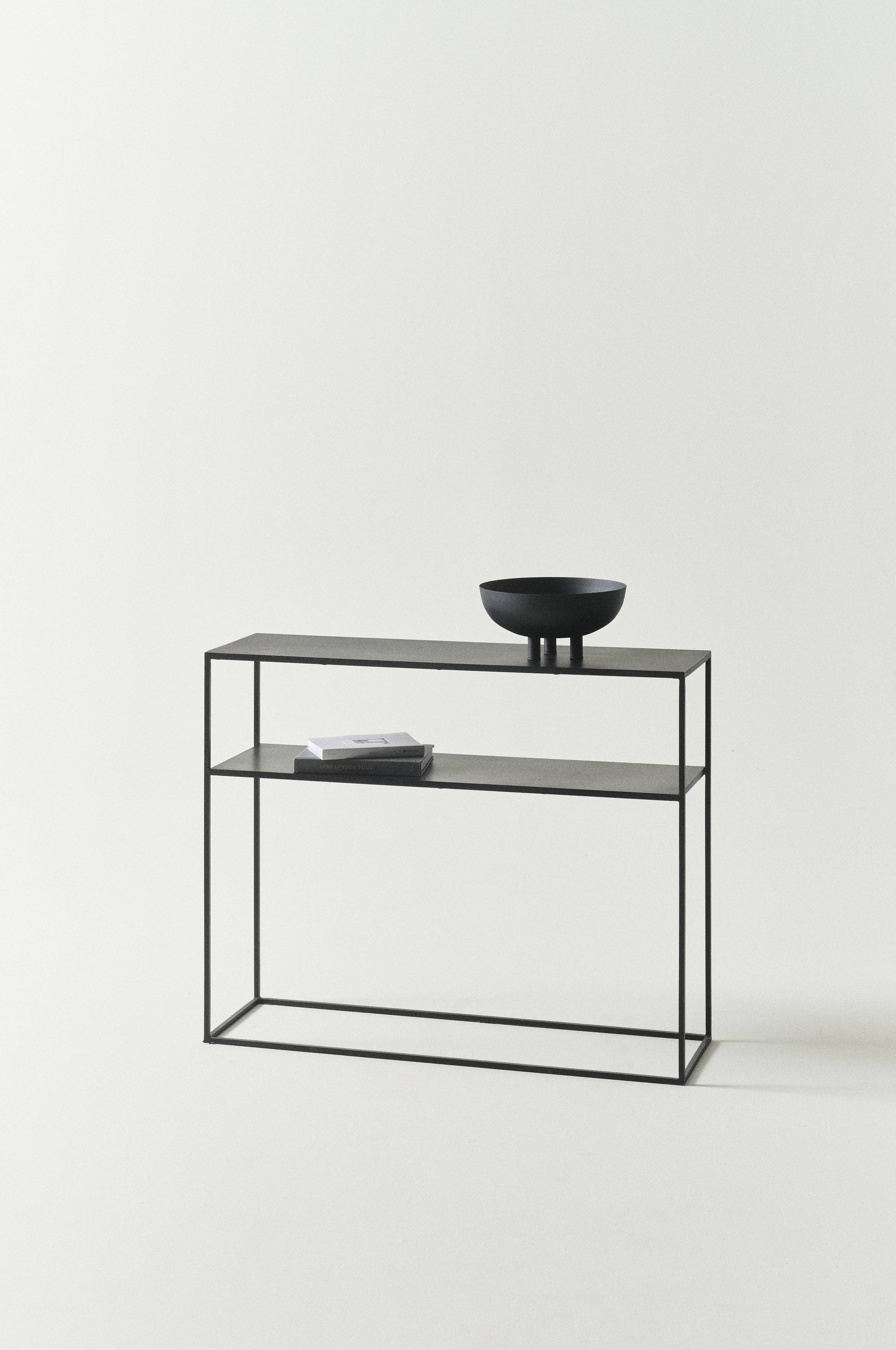 Sideboard aus matt lackiertem Eisen. METZ ist ein gerades, stringentes Modell mit dezentem Profil. Die Platten sind, optisch sehr ansprechend, ebenfalls aus Eisen. Dieses Modell hat eine schöne und praktische Ablage. Es bietet Platz für Bücher und Zeitschriften, Geschirr und Textilien - in der Diele aufgestellt, ist METZ auch ideal zum Verstauen von Handschuhen und Taschen. Die Oberfläche ist pulverbeschichtet.