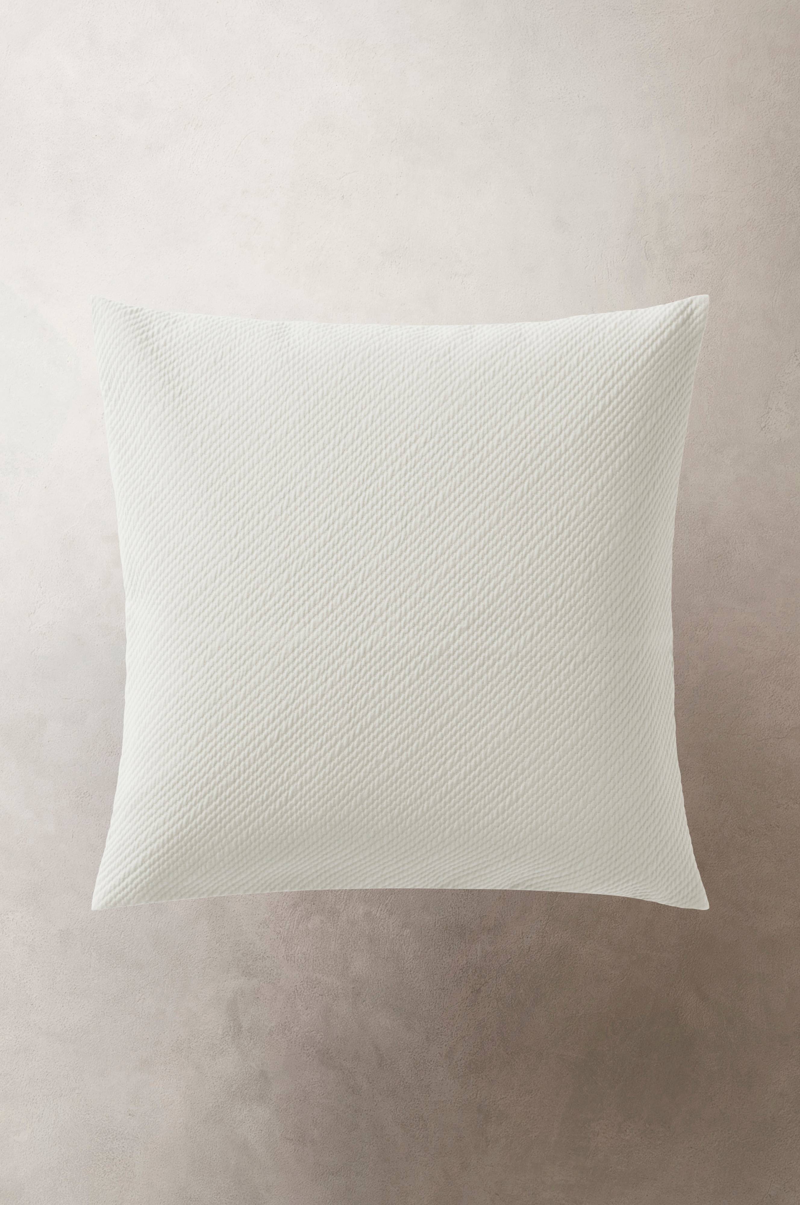 1er-Pack Kissenhülle aus geschmeidigem Baumwollstrick, schön klassisch in ihrer Schlichtheit. Die Stricktechnik erzeugt ein Ton in Ton gehaltenes, diagonales Karomuster mit dezenter Struktur. Der angenehme Stoff hat ein Grammgewicht von 440 g/m². Die Kissenhülle hat einen Hotelverschluss.