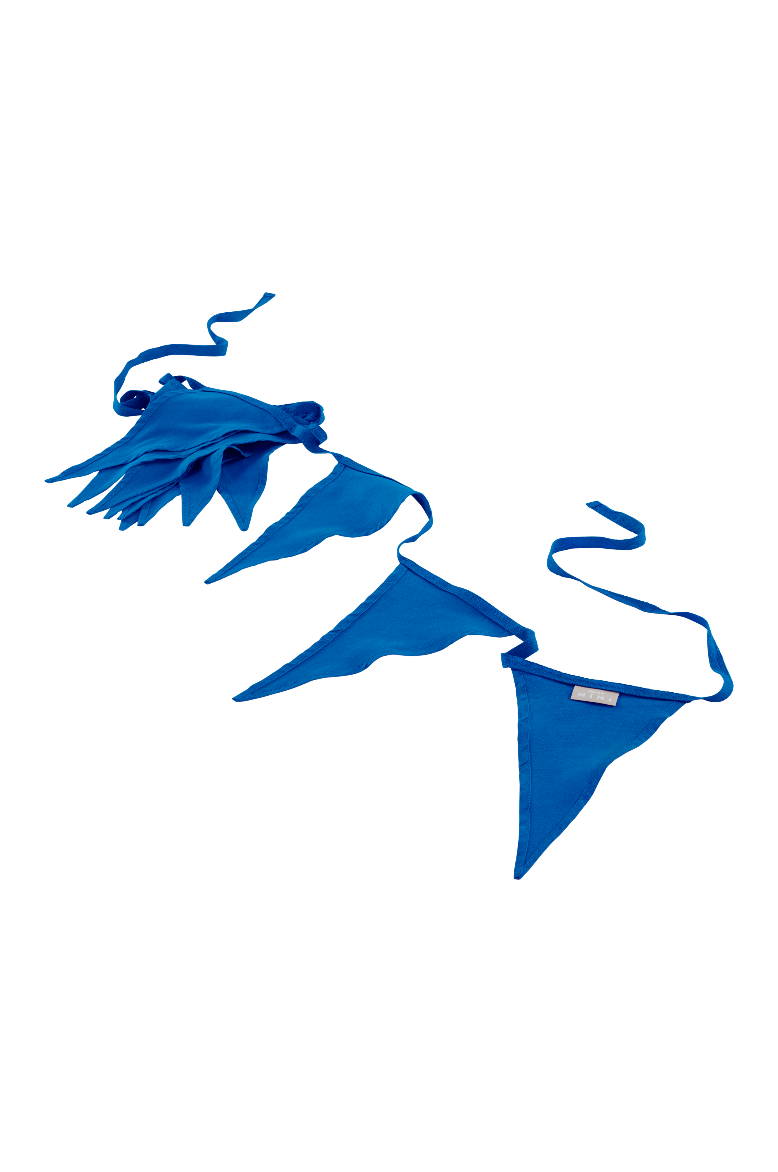 An einem gewebten Band sind kleine einfarbige Wimpel aus vorgewaschener Bio-Baumwolle aufgereiht. Das kräftige Baumwollgarn verleiht dem Stoff seine exklusive Optik und den leinenähnlichen Griff. Mit der Girlande lässt sich das Kinderzimmer fröhlich dekorieren, besonders wenn du mehrere in verschiedenen Farben aufhängst.