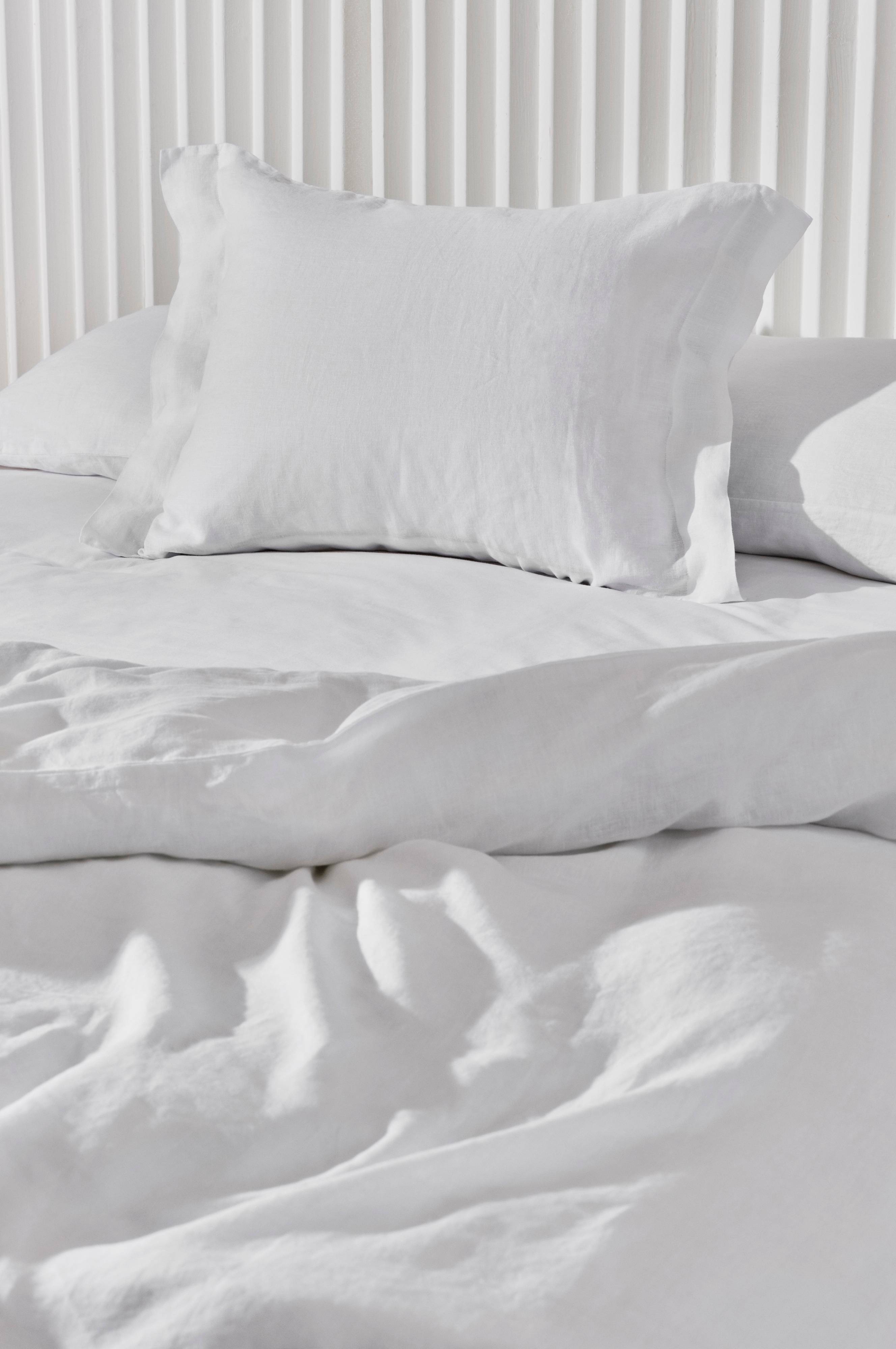 Kopfkissenbezug aus edlem Leinen. Der Leinenstoff von NATTKVIST ist vorgewaschen und daher wunderbar weich und angenehm zum Schlafen. Dieser Kopfkissenbezug hat an den Seiten einen 7 cm breiten Stehsaum. Fadendichte 94 TC. (Mit der Fadendichte bzw. dem TC-Wert (Thread Count) wird die Anzahl der Fäden in Kette und Schuss pro Quadratzoll angegeben. Je höher die Fadendichte, desto höher die Qualität. Eine Ausnahme bildet Leinen, denn hier möchte man oft durch etwas lockereres Weben die gewünschte Haptik erzielen.)