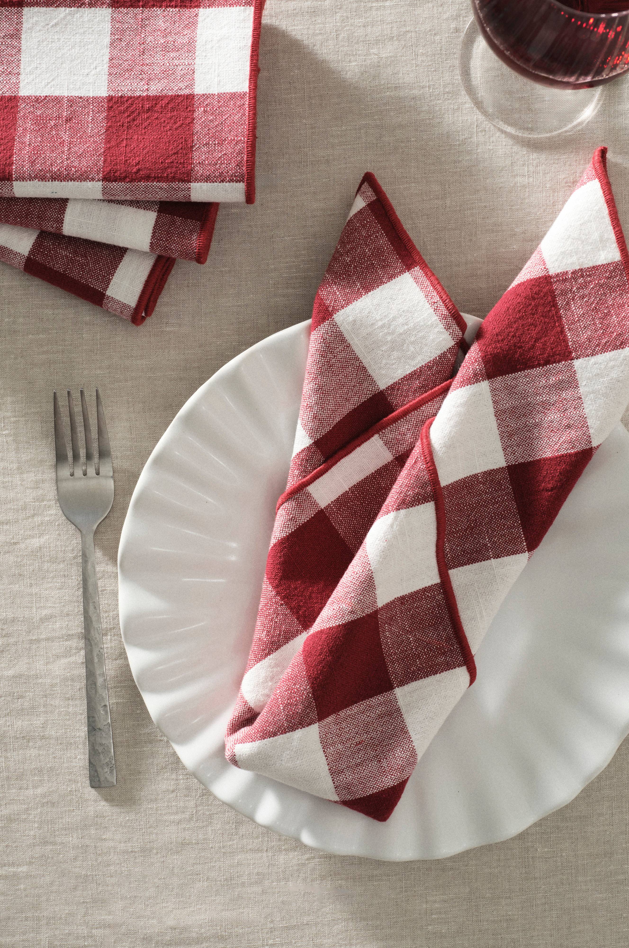 4 Servietten aus stückgewaschener Baumwolle mit klassischem Karo-Webmuster. NEVA verleiht deiner Küche eine gemütliche Atmosphäre und die garngefärbten Karos sehen das ganze Jahr über hübsch aus, auch in der Weihnachtszeit. Dieser Artikel ist stückgewaschen; d. h. er wird nach dem Nähen gewaschen und erhält so eine besonders weiche Haptik. Grammgewicht des Stoffs 210 g/m².