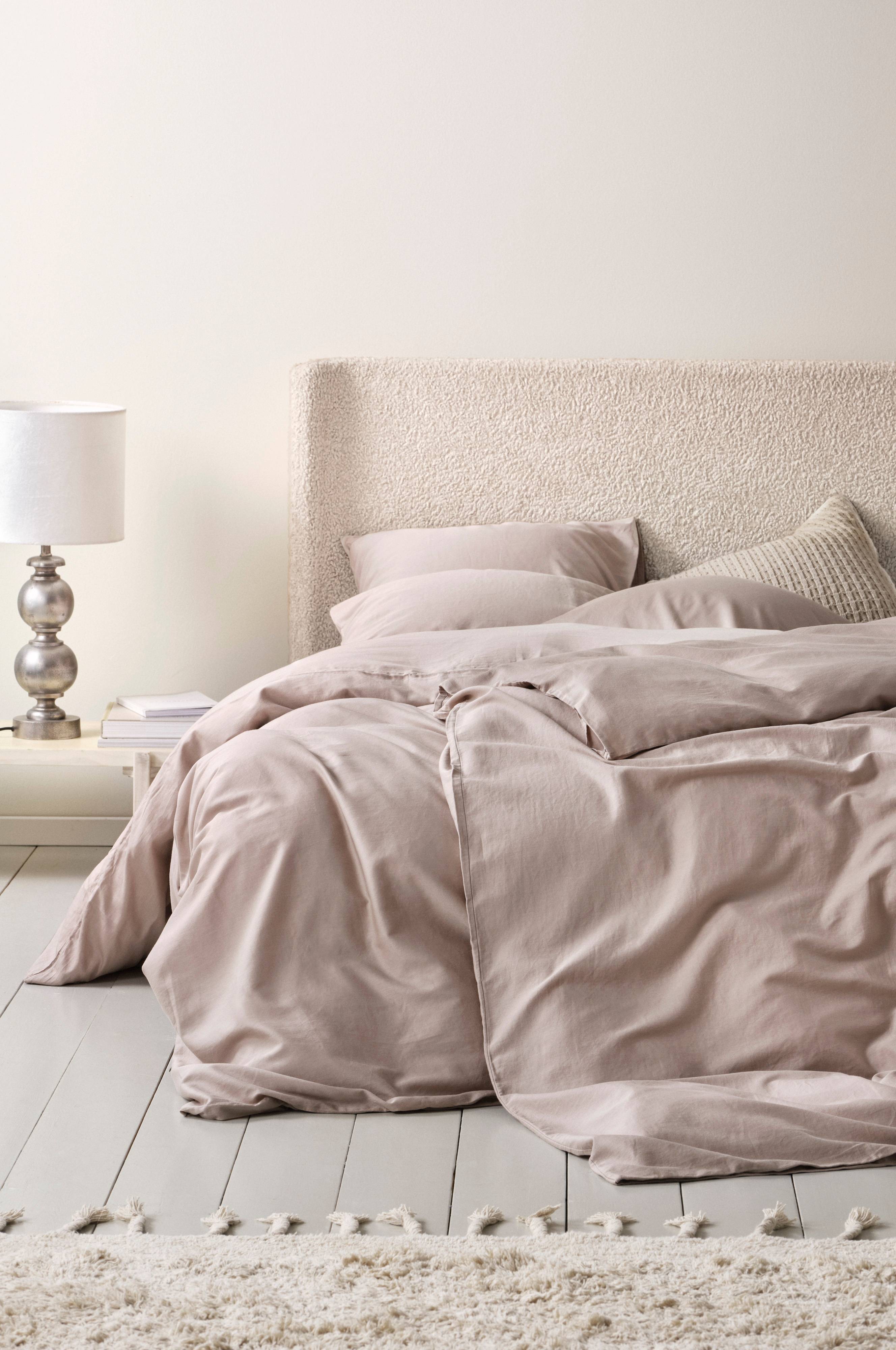 Einfarbiger Bettbezug aus komfortablem Baumwollsatin. Satin ist eine Webtechnik, die einen wunderbar glatten, weichen und geschmeidigen Stoff ergibt. Mit dieser Technik gewebte Baumwolle verleiht dem Stoff einen schönen Glanz und einen luxuriösen Griff. Der Bettbezug ist außerdem gewaschen, um ihn besonders weich und geschmeidig zu machen. Verdeckte Druckknöpfe aus Kunststoff für den Verschluss.