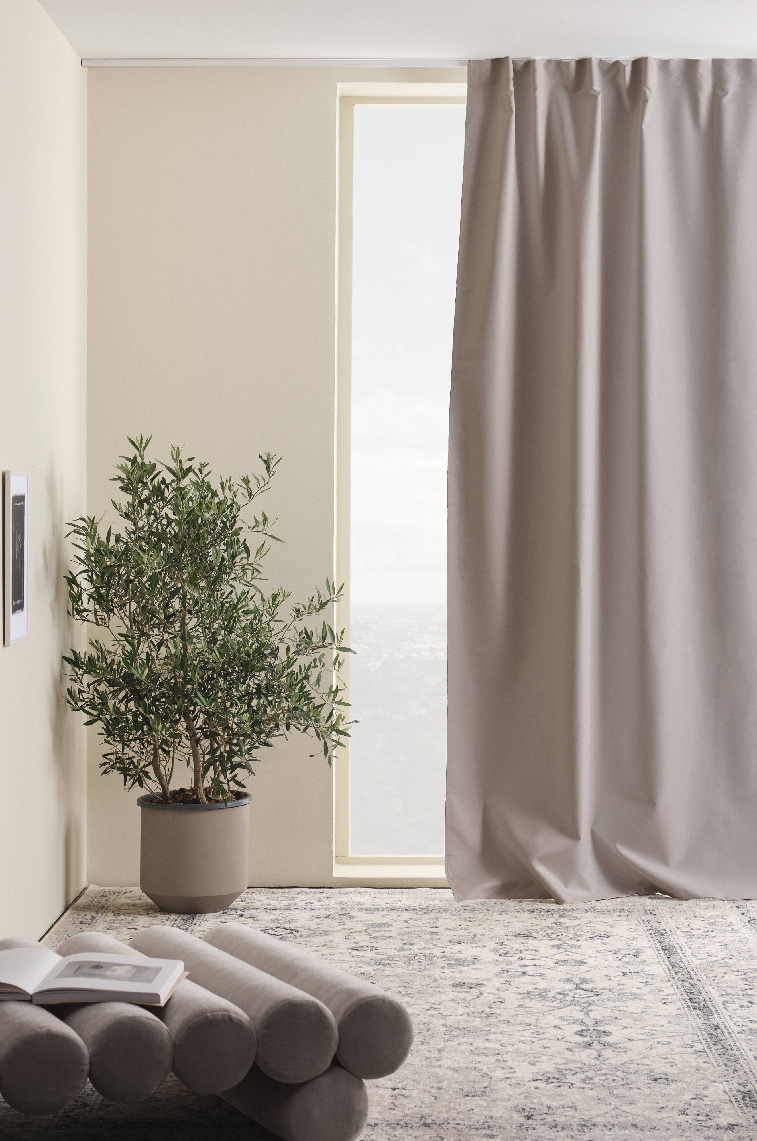 Ein Gardinenschal zum Verdunkeln. NIKA besteht aus Polyester in besonders geschmeidiger Mikrofaserqualität, die mit einer Verdunkelungsbeschichtung ausgestattet ist, um die Helligkeit abzuhalten. 50 % Recyclinganteil. Dieser Vorhang ist von beiden Seiten gleich schön anzusehen. Aufhängefertig mit Multifunktionsband. Dieses Modell kann mittels Gardinenhaken, Stangendurchzug oder verdeckten Schlaufen aufgehängt werden.