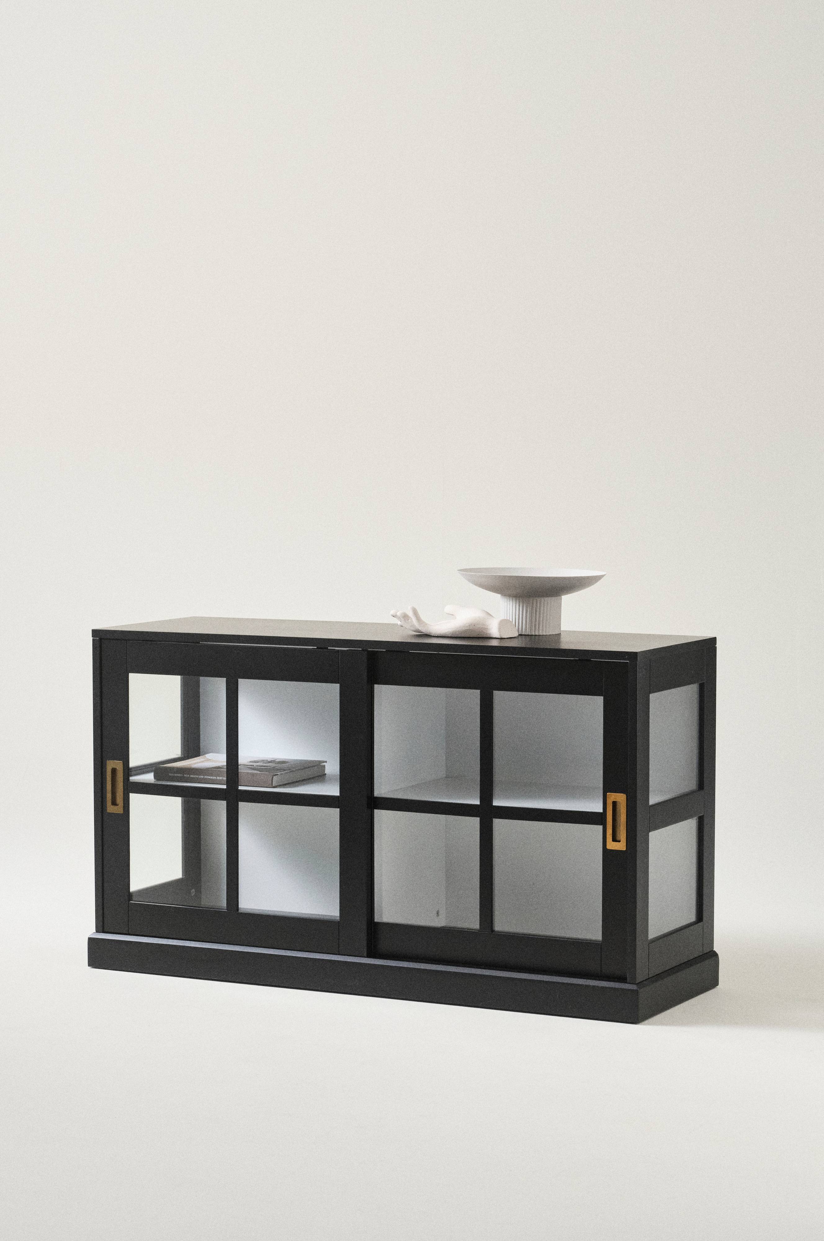 Zeige deine schönsten Sachen in einem Vitrinenschrank. Die gläsernen Schiebetüren mit Messingbeschlägen sind besonders platzsparend. In den tiefen Regalen kannst du viel verstauen. Belastbarkeit je Einlegeboden: 20 kg.