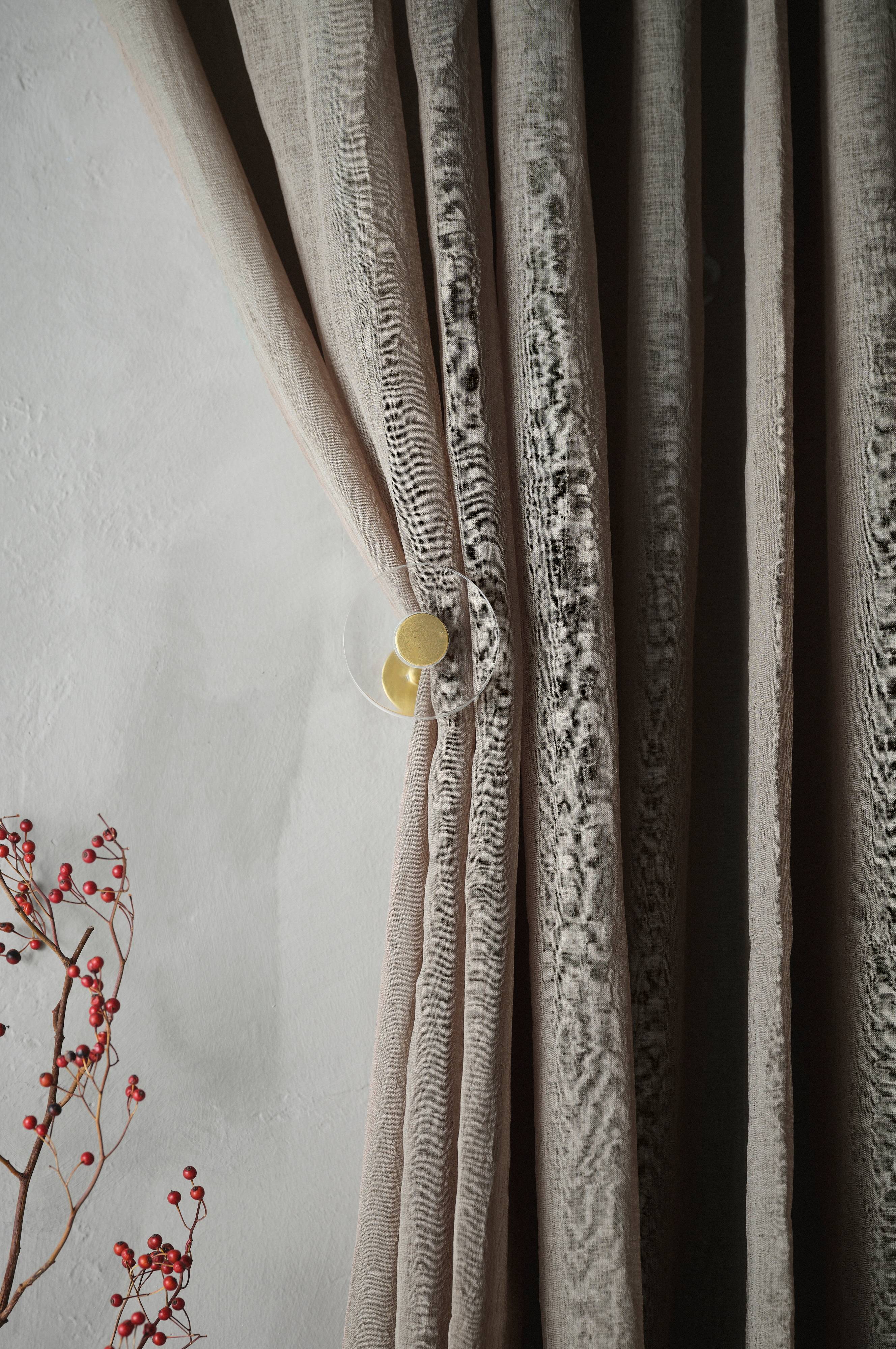 2er-Pack Raffhalter aus Eisen mit einer Zierscheibe aus Plexiglas. Diese praktischen und dezenten Raffhalter verstärken die optische Wirkung des Vorhangs. Schrauben und Dübel sind enthalten.