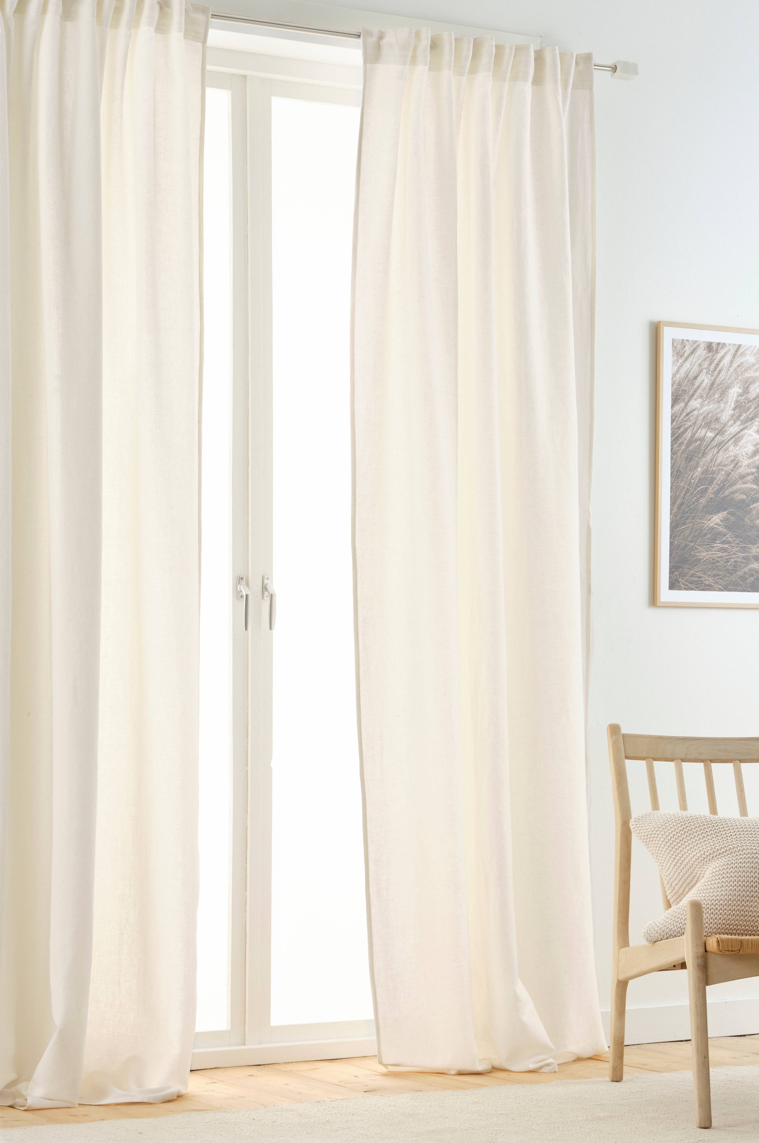 Diese Gardinenschals aus einem einfarbigen Leinen/Baumwoll-Gemisch sind in mehreren Naturtönen erhältlich. Schlicht ist schön. Das Multifunktionsband dieses Modells erlaubt das Aufhängen mit Gardinenhaken, Stangentunnel oder verdeckten Schlaufen. Das Gemisch aus Baumwolle und Leinen sorgt für eine pflegeleichte Qualität, die die Vorteile der beiden Materialien vereint. Leinen bringt die etwas festere Struktur mit, Baumwolle liefert die angenehme Geschmeidigkeit - so bekommt diese Gardine einen besonders schönen Fall.