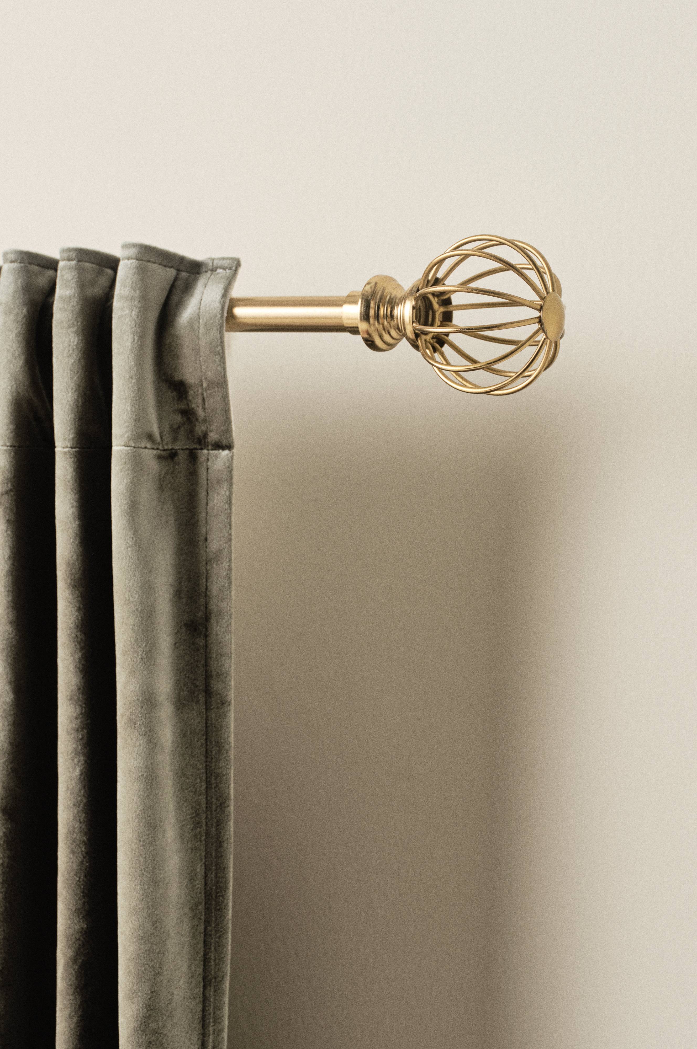Gardinenstange aus Eisen und Stahl. Bei NULA präsentieren sich die filigranen Endstücke überaus zart und luftig. Die Endstücke werden auf die Gardinenstange aufgeschraubt. Inklusive 3 Wandhaltern, Dübel und Schrauben.