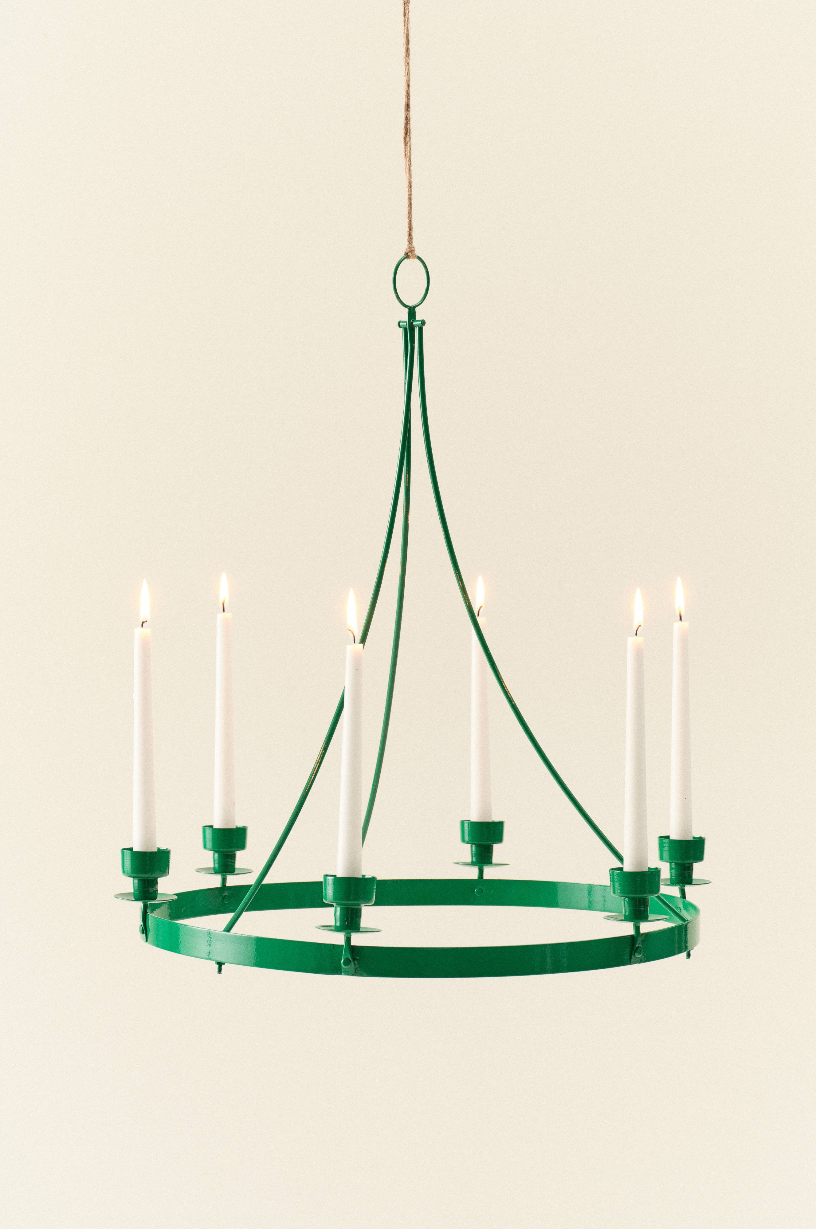 NYPONROS heißt dieser schöne Kronleuchter aus Eisen. Der Kronleuchter im Carl-Larsson-Stil hat eine hochglänzende Pulverbeschichtung erhalten. In die sechs Kerzenhalter passen sowohl Kerzen mit 2 cm als auch mit 4 cm Durchmesser. Das Modell lässt sich super dekorieren, z. B. mit frischen Zweigen. Bedenke dabei aber auch immer die Brandgefahr! Dekoriere nicht zu üppig und achte auf ausreichend Abstand zu den Kerzenhaltern. Der Kronleuchter kann auch im Freien eingesetzt werden; da er jedoch aus Eisen gearbeitet ist, wird er mit der Zeit rosten. Kratzer im Lack können diesen Vorgang beschleunigen.