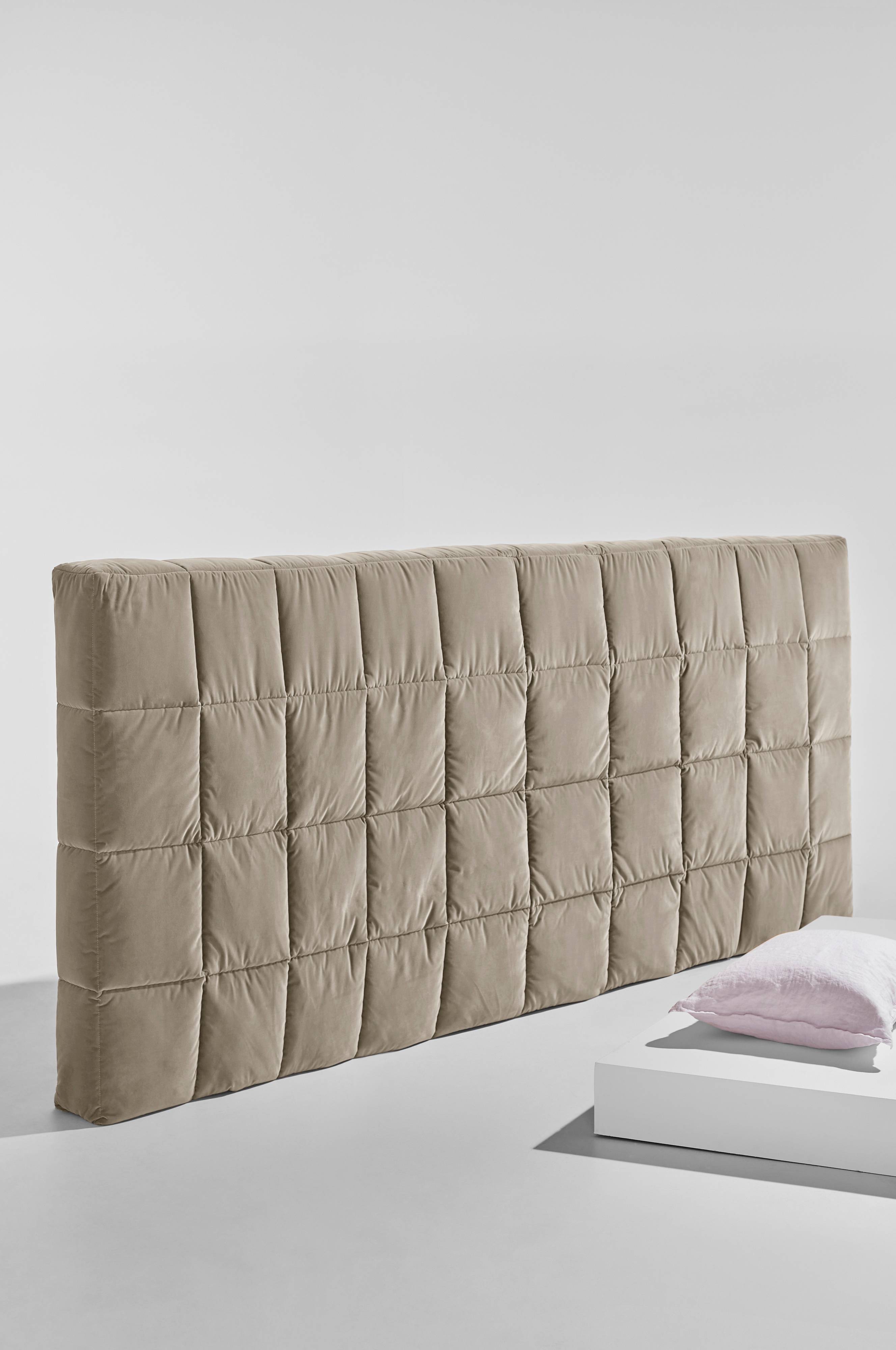 Dieser Samtüberzug ist auf das Kopfteil Basil abgestimmt. Der Samt ist in 30x30 cm großen Karos abgesteppt. Samt bringt Leben in den Raum, da das Licht mit dem Stoff spielt und er so in unterschiedlichen Nuancen changiert. Ein Terylenfutter sorgt bei dem Stoff für angenehm weichen Komfort und unterstreicht den Effekt der Steppung. Mit diesem Überzug für ein 300 cm breites Kopfteil sorgst du für eine samtene Wand hinter deinem Bett. Basil ist die perfekte Symbiose aus Trendbewusstsein und Retro-Look und kommt in tollen Farben daher.