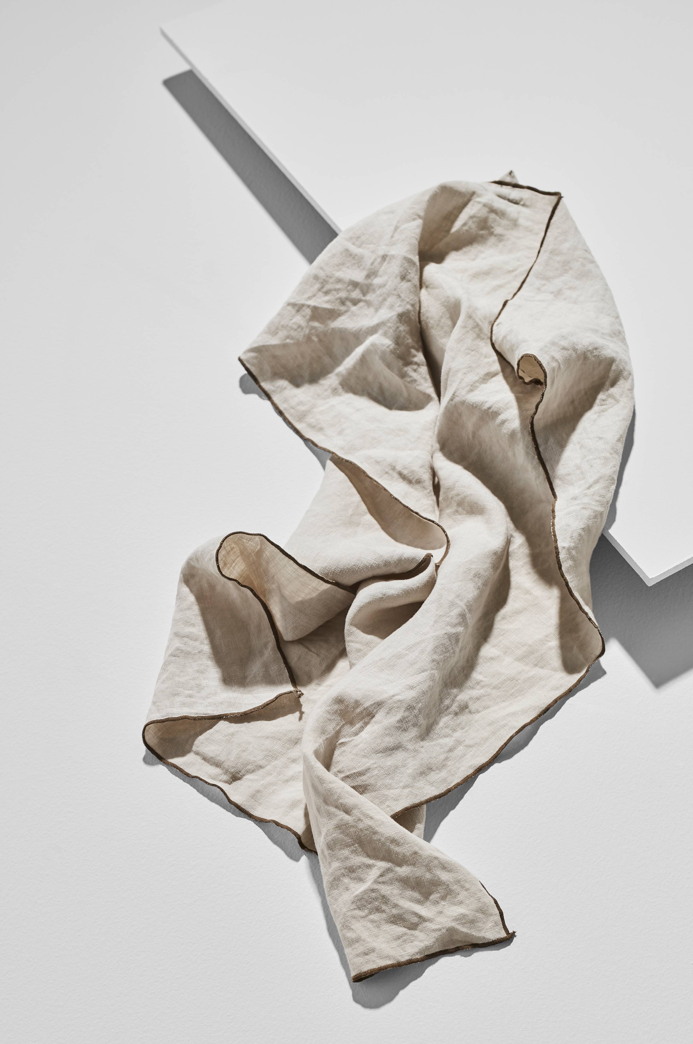 Ein Leinenhandtuch in einem raffinierten Farbschema. Leinenhandtücher vermitteln ein natürliches und angenehmes Gefühl, wenn Sie gutes Essen servieren. Die Kollektion Bonne ist in einer gewaschenen Leinenqualität aus Frankreich, die sich genau richtig anfühlt. Es ist weich, geschmeidig und angenehm, 165 Gramm/m². Die Kanten sind rundum mit einer kontrastfarbenen Overlocknaht versehen. Gewebte Aufhängung an einer kurzen Seite. Das Handtuch ist pflegeleicht und wird mit der Zeit immer schöner, egal ob Sie es bügeln oder schön ungebügelt verwenden wollen. Sie können die schönen Farbnuancen genau so mischen, wie es Ihnen gefällt, alle Farben passen zusammen.