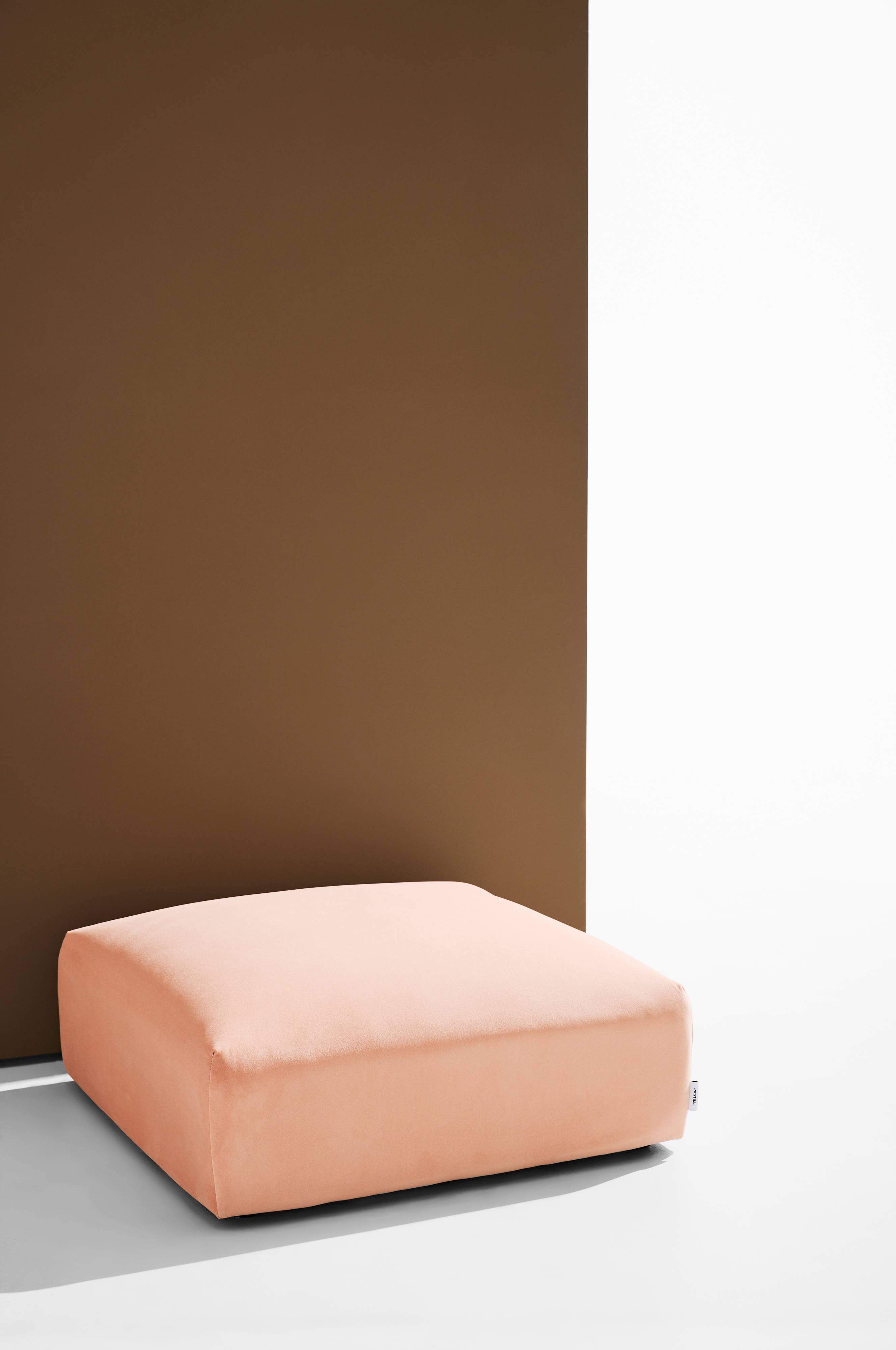Wenju ist ein niedriger, geräumiger und bequemer Hocker, der die Wenju-Polstermöbelkollektion, bestehend aus zwei Sofas und einem Fauteuil, ergänzt. Verwenden Sie ihn als zusätzliche Sitzgelegenheit, als Tisch mit einem Tablett darauf oder stellen Sie ihn neben Ihr Wenju Sofa oder Ihren Fauteuil, um die Füße hochzulegen und zu entspannen. Der Wenju Pouf ist ein tragbarer Zuckerwürfel und Teil der Kollektion, mit dem Sie spielen können, der aber gleichzeitig eine Funktion erfüllt, wo immer Sie es wünschen.