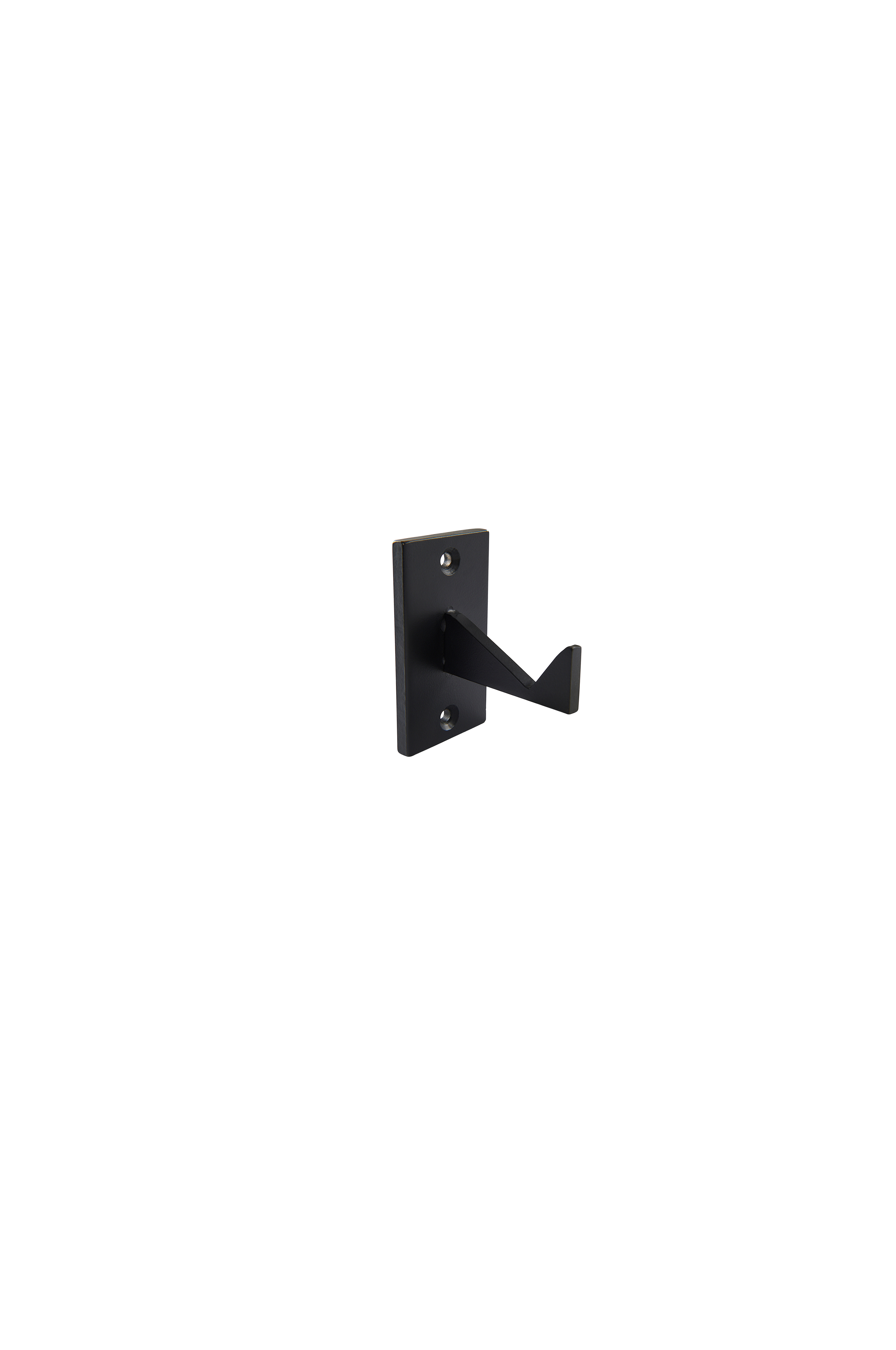 Aufhänger aus mattschwarzem Metall. Dank der kantigen Form hängen Handtücher, Kleidungsstücke und Taschen sicher.