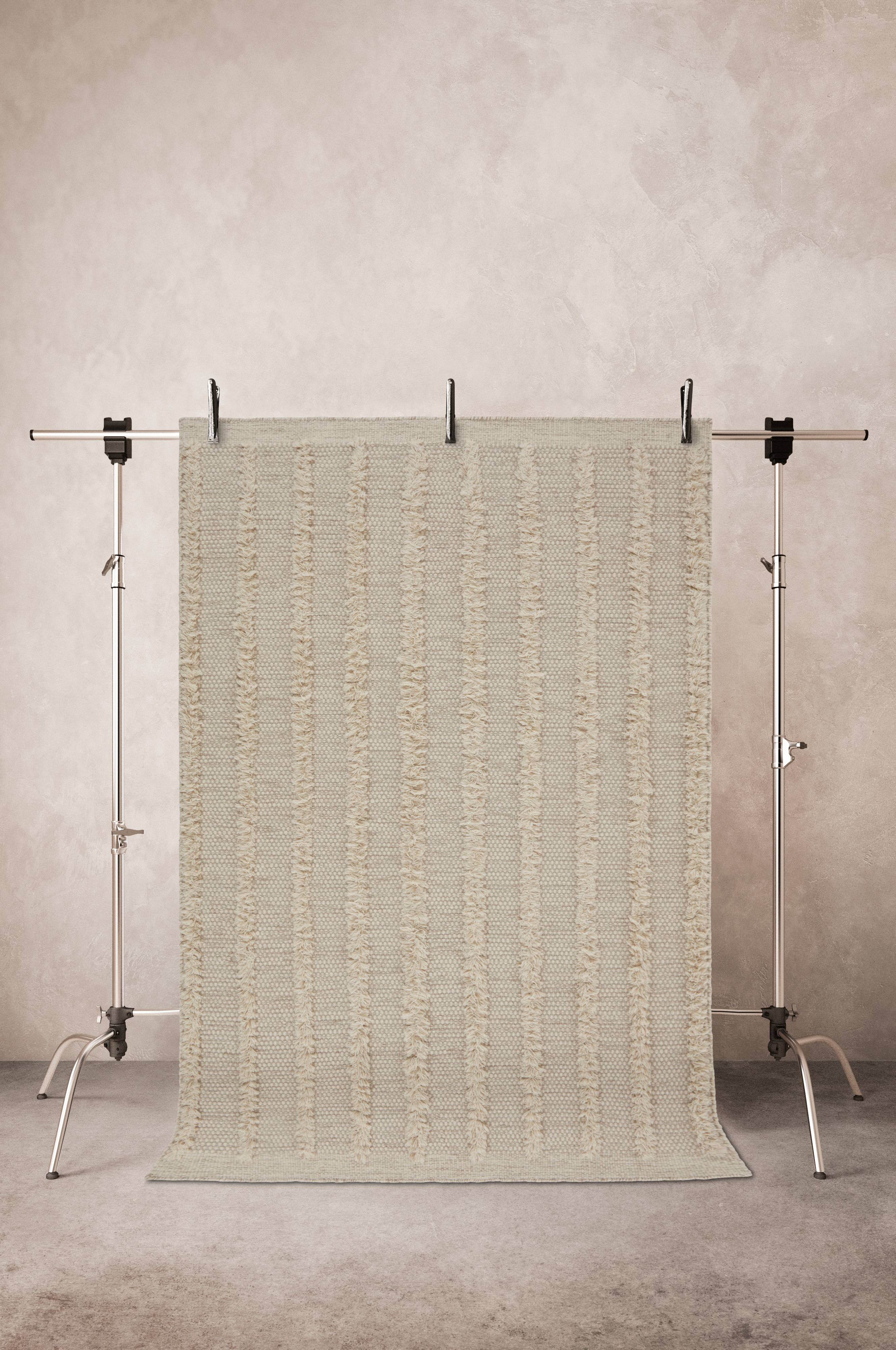 Bei diesem handgearbeiteten Flachgewebeteppich werden die langflorigen Streifen aus einem melierten, auf die Grundfarbe abgestimmten Garn geknüpft. Das Muster und die Knüpftechnik machen den Teppich zu einem echten Hingucker. Da das Modell von Hand gefertigt wird, ist jedes Exemplar ein Unikat. Das schöne Naturmaterial Wolle wärmt und sorgt für eine behagliche Atmosphäre. Wollteppiche sind von Natur aus warm und weich, strapazierfähig und schmutzabweisend. Florhöhe 3 cm. Dicke 1 cm. 2000 g/m².