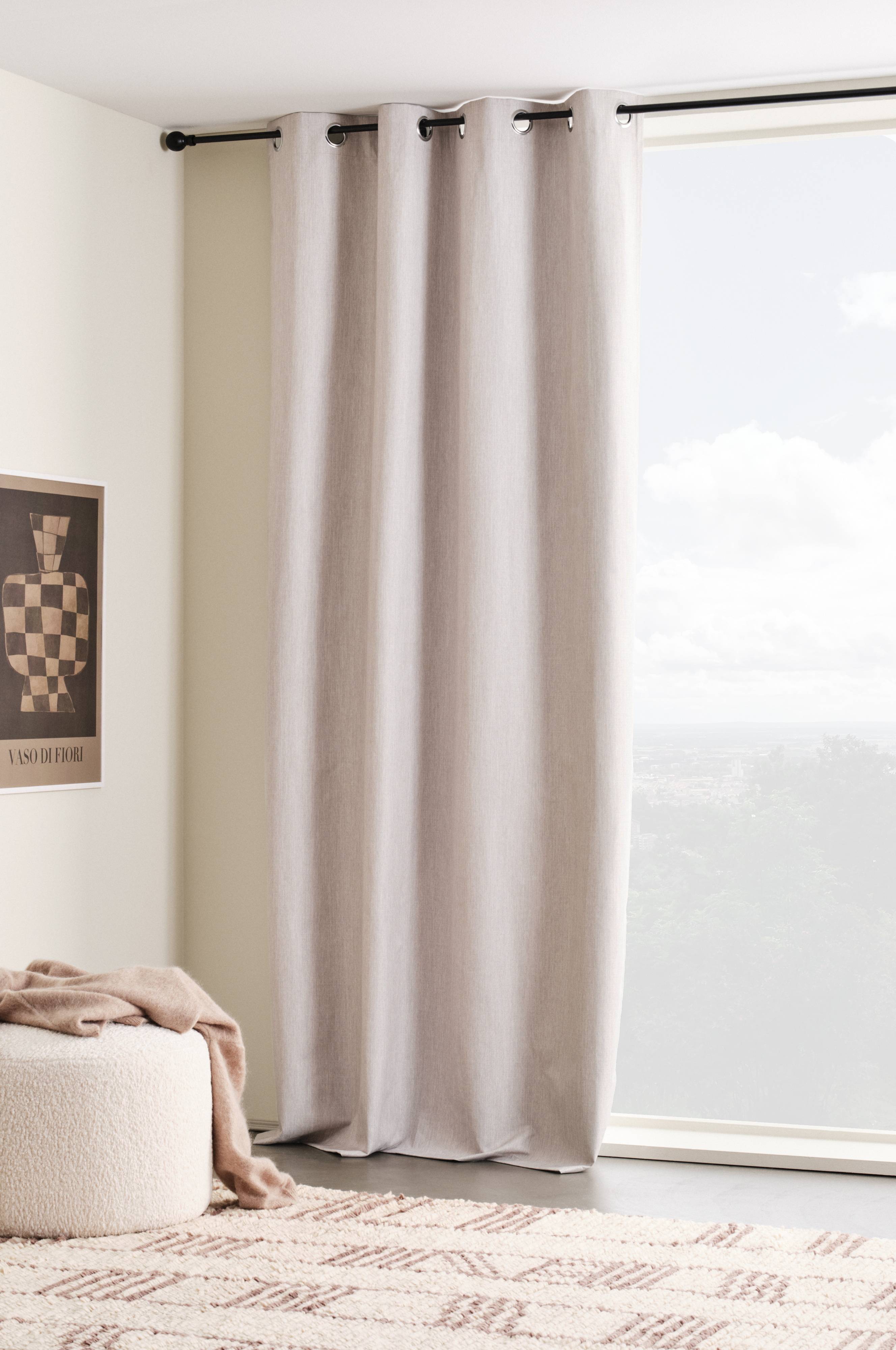 Tipp: Wenn du zwei Gardinenstangen montierst, kannst du deine normale Gardine behalten und den Verdunkelungsvorhang dazu kombinieren. Auch mit verdeckten Schlaufen und als Meterware erhältlich. Nach dem Auspacken des neuen Produkts lassen sich die Falten einfach entfernen, wenn du die Vorderseite mit einem feuchten Tuch und dem Bügeleisen leicht glättest. Hinweis: Die beschichtete Rückseite darf nicht gebügelt werden.