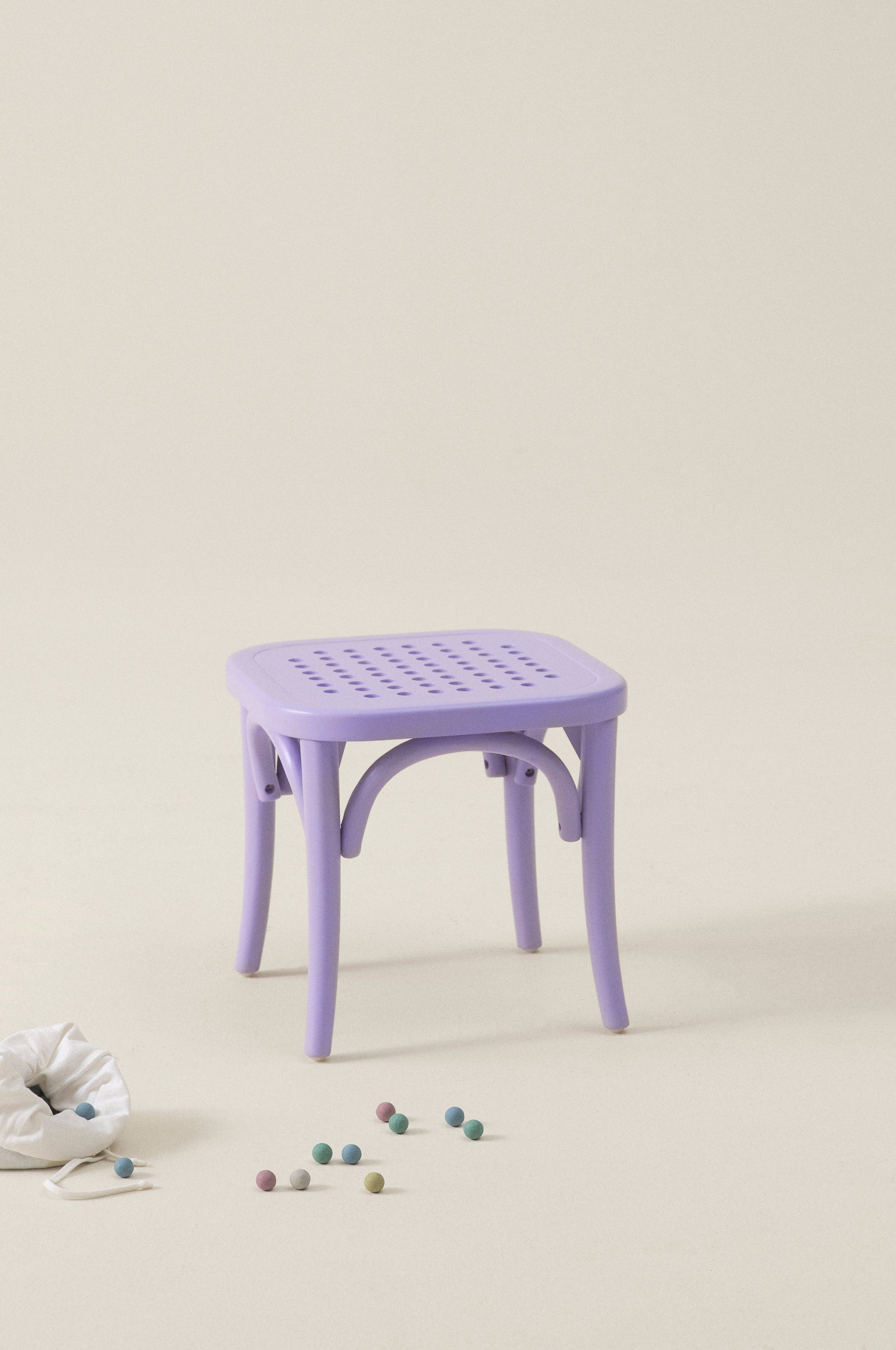 Ein Hocker im Miniformat aus FSC-zertifiziertem Buchenholz, das mit wasserbasiertem Lack in herrlichen Farbtönen behandelt ist. Die dekorativ perforierte Sitzfläche besteht aus Furniersperrholz (ohne FSC-Siegel). RIPPATS macht unverkennbar Anleihen beim klassischen Kaffeehausstuhl, zeigt er sich doch mit dessen runder Formgebung, die hier mit einer besonderen Sitzfläche aufwartet. Dieses Möbelstück ist aus Massivholz gearbeitet, hat eine Sitzfläche aus Furniersperrholz und besticht durch das luftige, leichte Design.