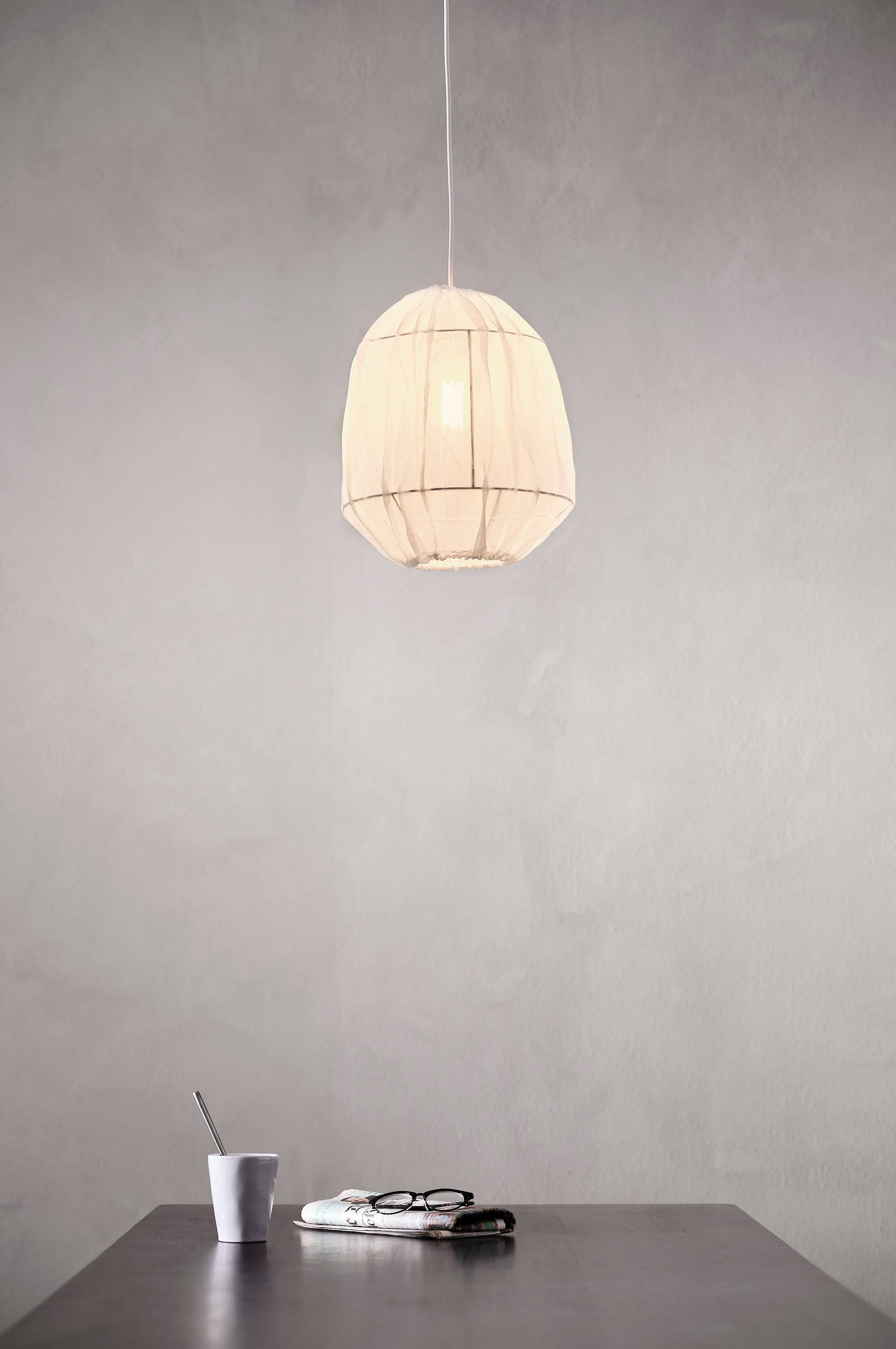 Eine Deckenleuchte aus feinem Leinen, die ein behagliches Licht verbreitet. Leinen ist ein Naturmaterial mit rustikalem, naturnahem Ausdruck. Dezentes Gestell aus Metall. Weißes Kabel, Kabellänge 1,1 m.
