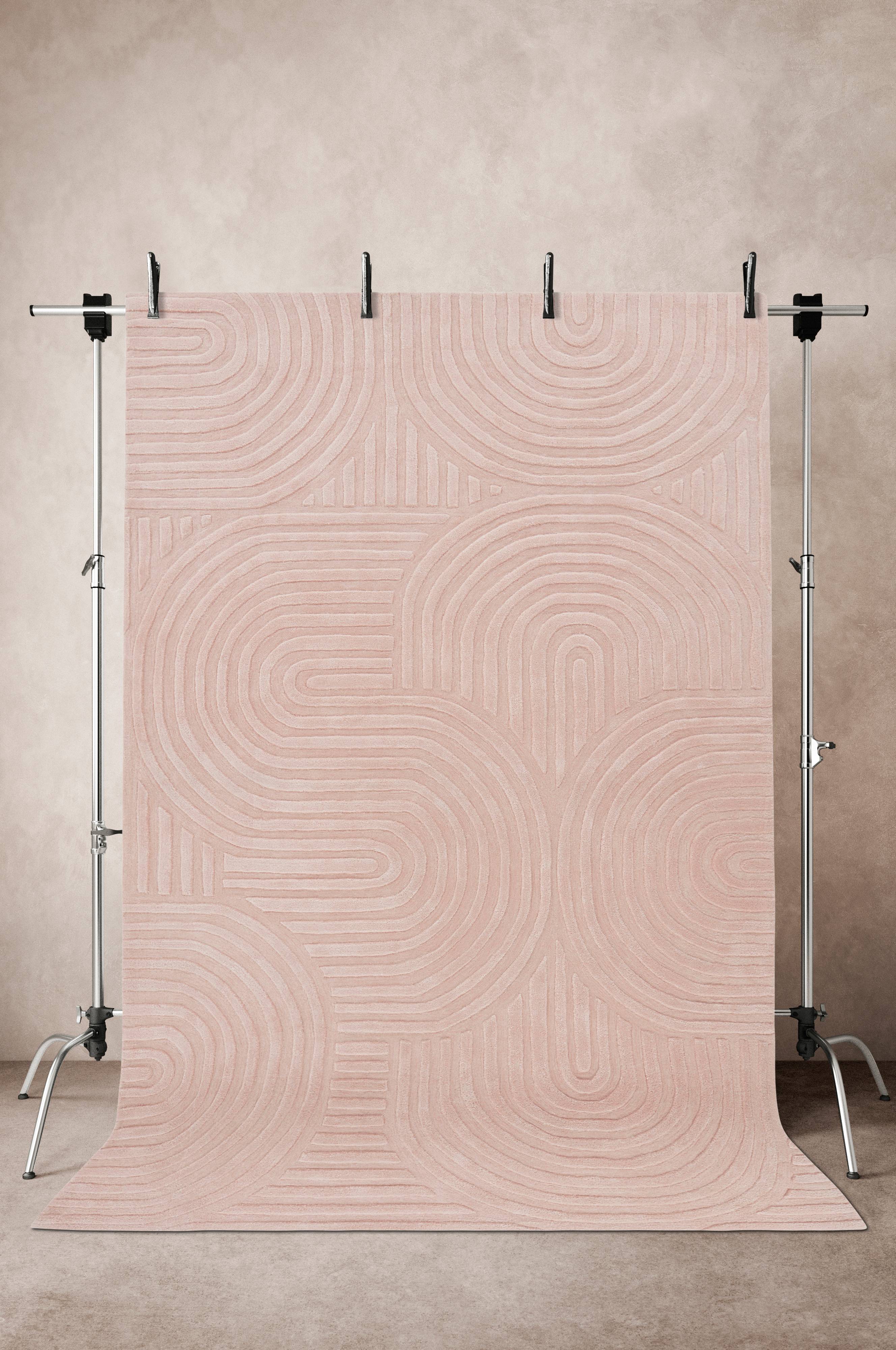 Handgetufteter Teppich aus Viskose. Das dezente, Ton in Ton gehaltene Muster entsteht durch die unterschiedliche Florhöhe. Der Teppich ist dicht gewebt und angenehm weich. Da das Modell von Hand gefertigt wird, ist jeder Teppich ein Unikat. Florhöhe 0,8-0,9 cm und 1-1,2 cm. Dicke 1,3‒1,4 cm. 4000‒4200 g/m².