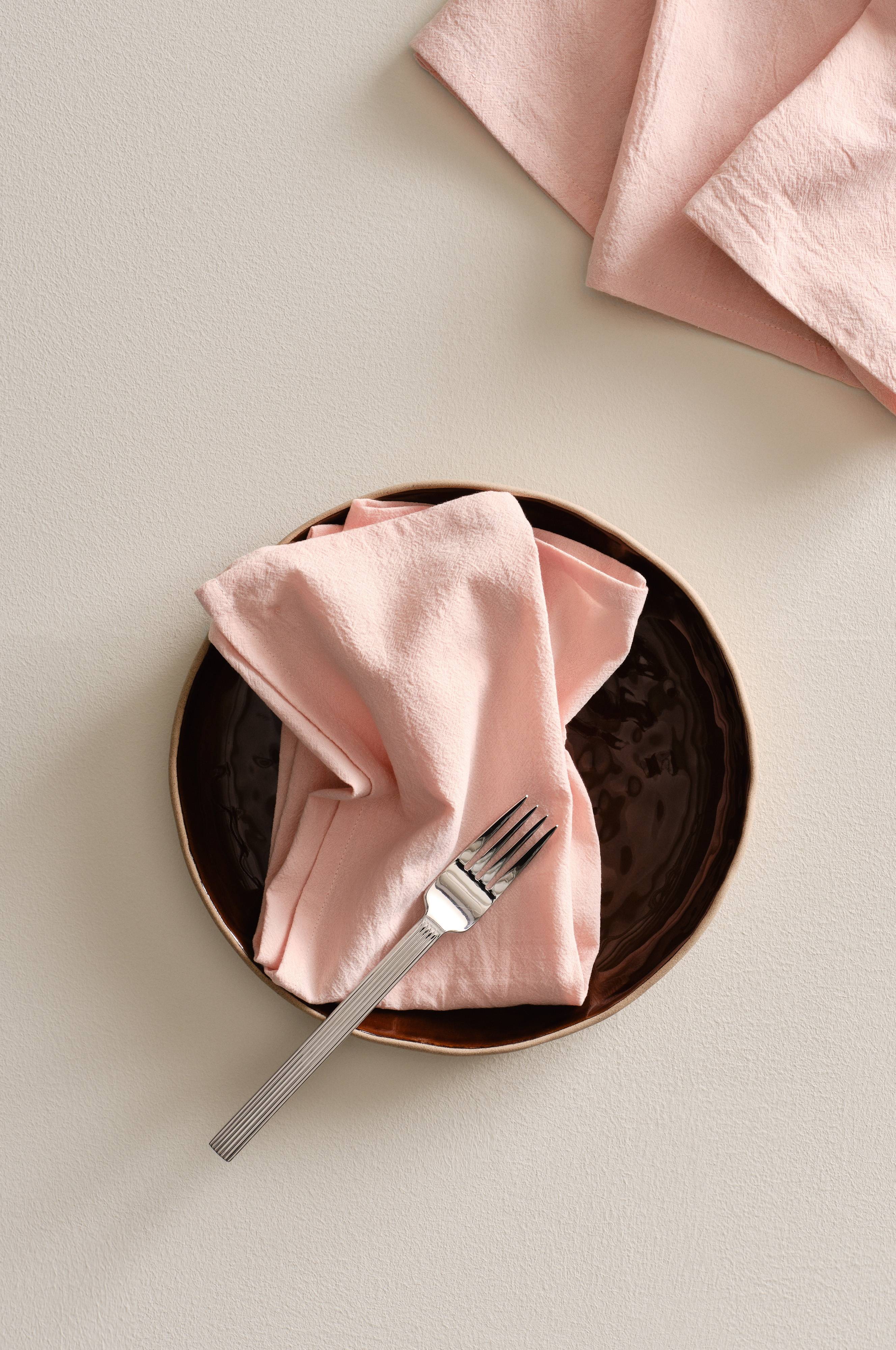 4 einfarbige Servietten aus weicher Baumwolle in soften, satten Farbtönen. Mit einfarbigen Servietten hast du mehr Freiheit bei der Tischdeko: Du kannst nach Belieben gemustertes Geschirr wählen und mehrere Dessins und Farben kombinieren.