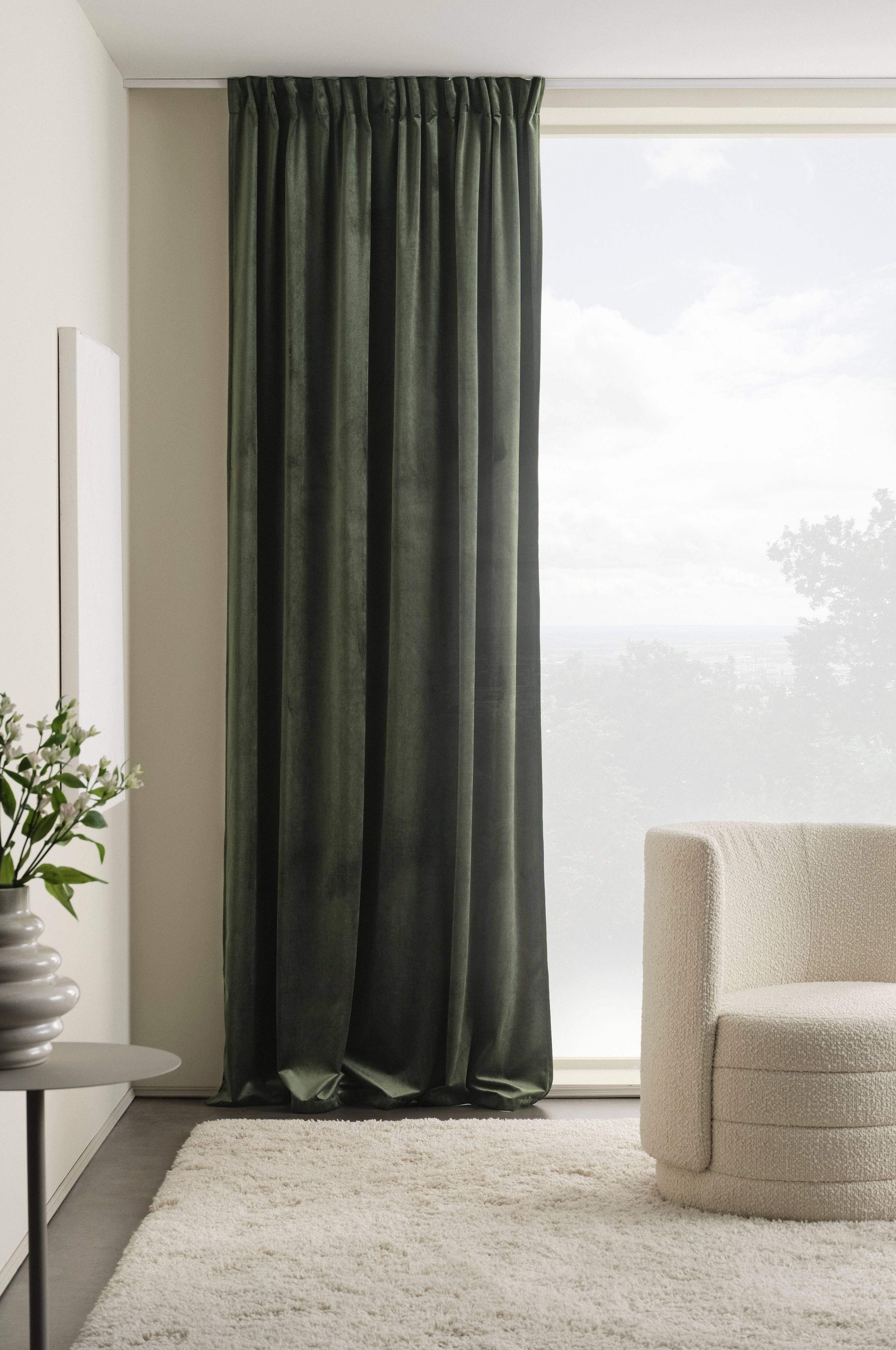 Eine Vorhanglänge aus unifarbenem Polyester-Samt. Samt hat einen schönen Glanz und fühlt sich weich an, die Farbe schimmert wunderschön in unterschiedlichem Licht.