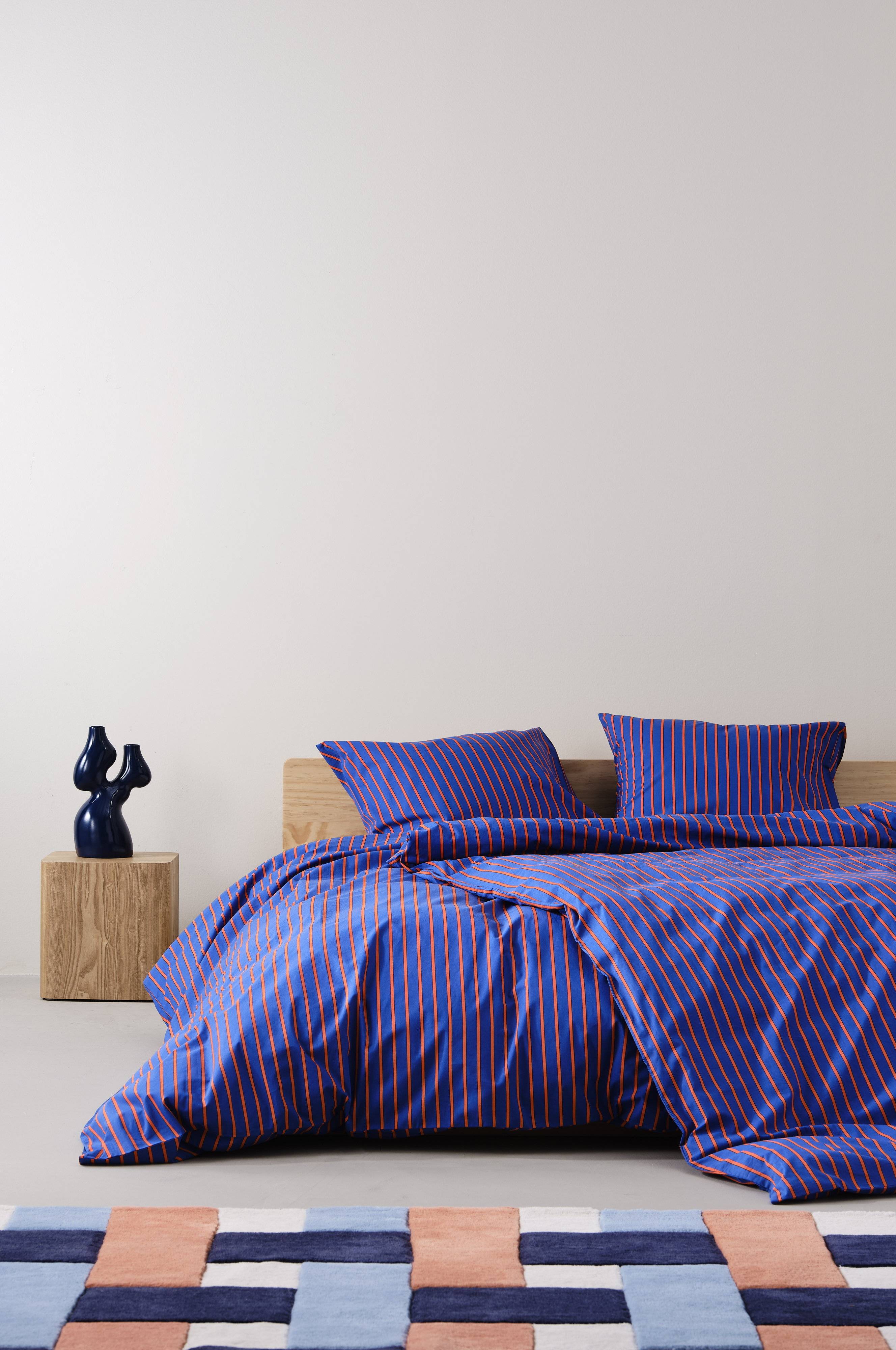 SIMA Bettbezug aus ökologischer Baumwolle. Bedruckte Streifen in knackigen Farben. Verwandeln Sie Ihr Schlafzimmer in einen erholsamen Ort.