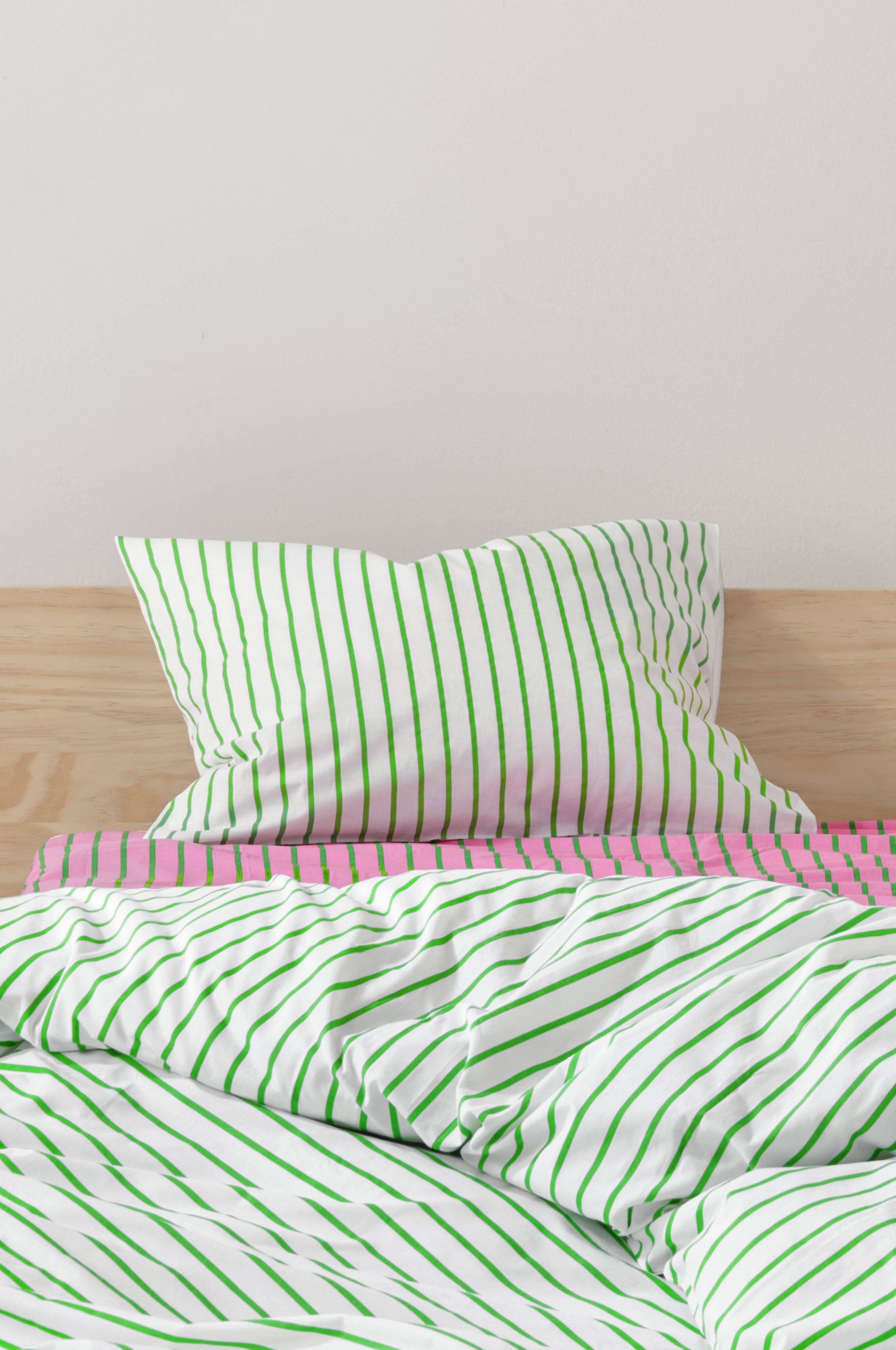 SIMA Kopfkissenbezug aus ökologischer Baumwolle. Bedruckte Streifen in knackigen Farben. Verwandeln Sie Ihr Schlafzimmer in einen erholsamen Ort.