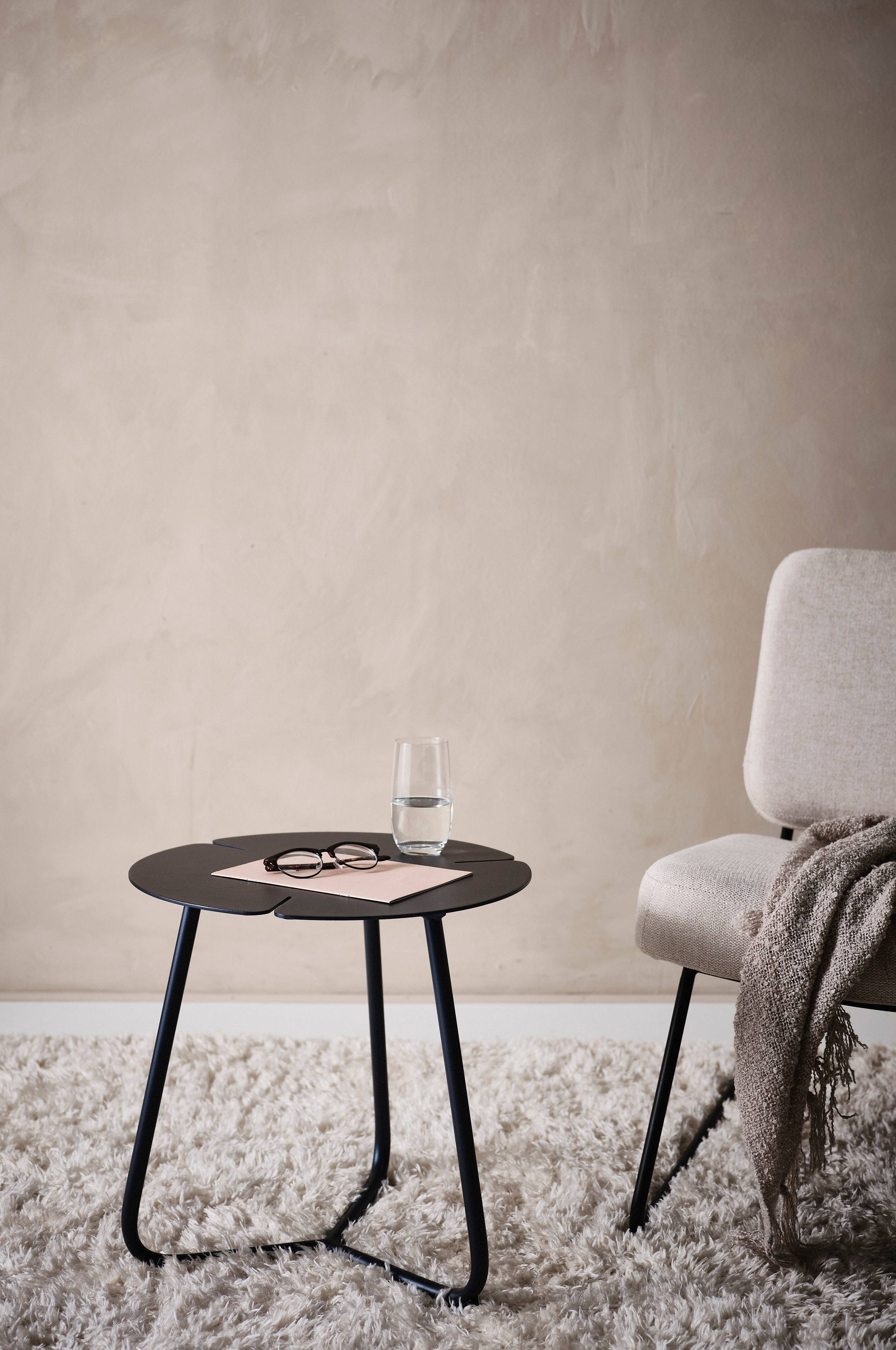 Beistelltisch aus pulverbeschichtetem Aluminium mit mattem Finish. Durch sein niedriges Gewicht ist Aluminium ein praktisches Material, das zudem rostfrei ist und daher draußen stehen bleiben kann. Dank der matten, optisch ansprechenden Pulverbeschichtung wird das Sonnenlicht nicht reflektiert.