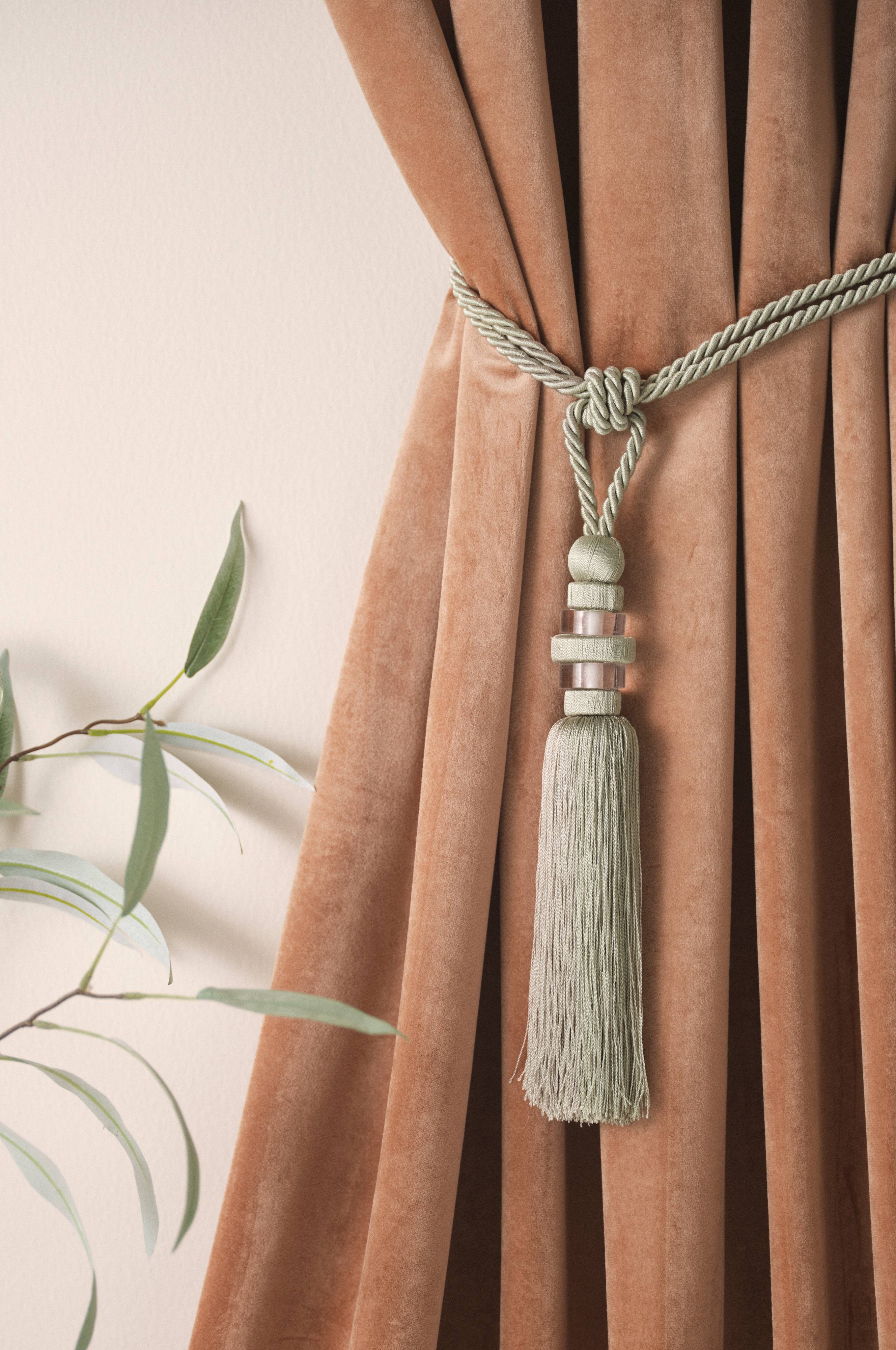 2 Raffhalter aus Viskose und Acryl. SUKI ist ein wunderschöner Raffhalter mit dekorativen Perlen, mit dem du stilvollen Gardinen das i-Tüpfelchen verleihst.