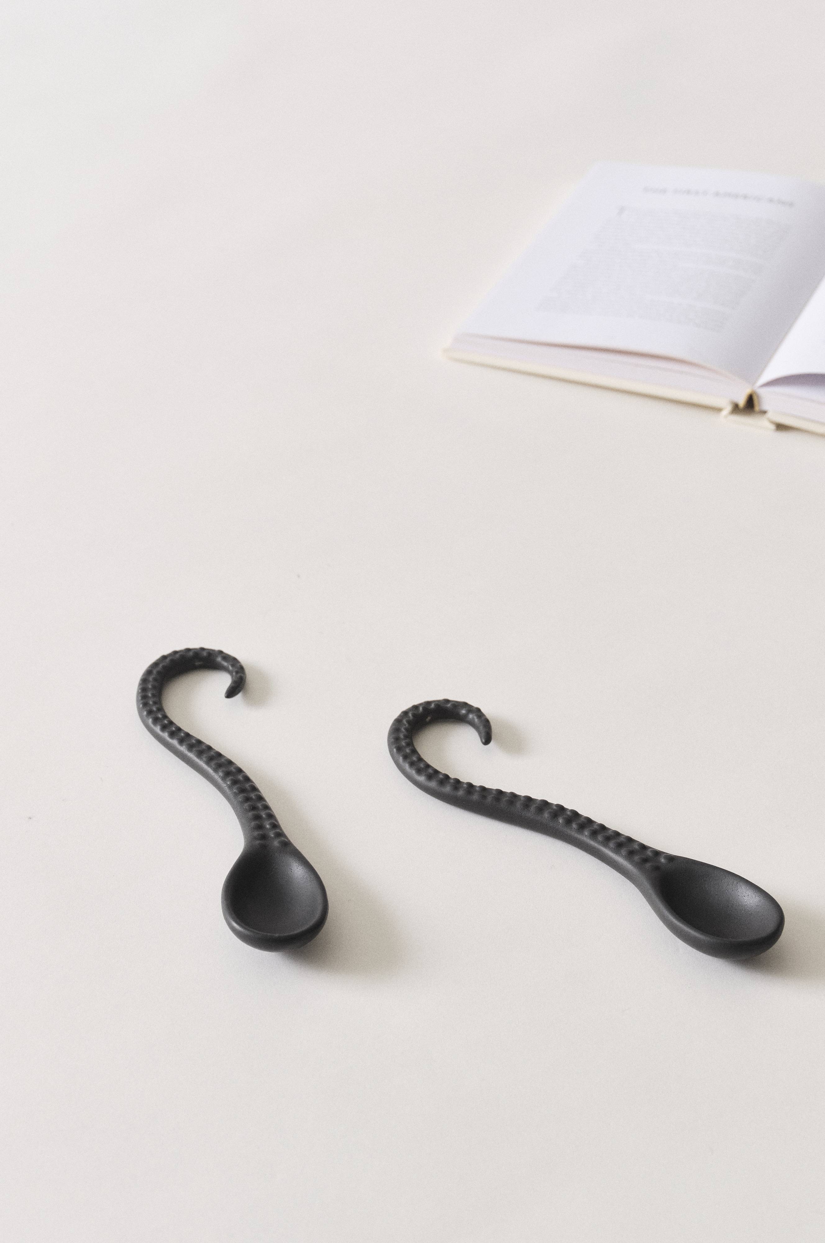 2er-Pack Löffel aus Dolomit-Porzellan. TAIL hat die Form eines Tintenfischarms und ein dezentes Reliefmuster.