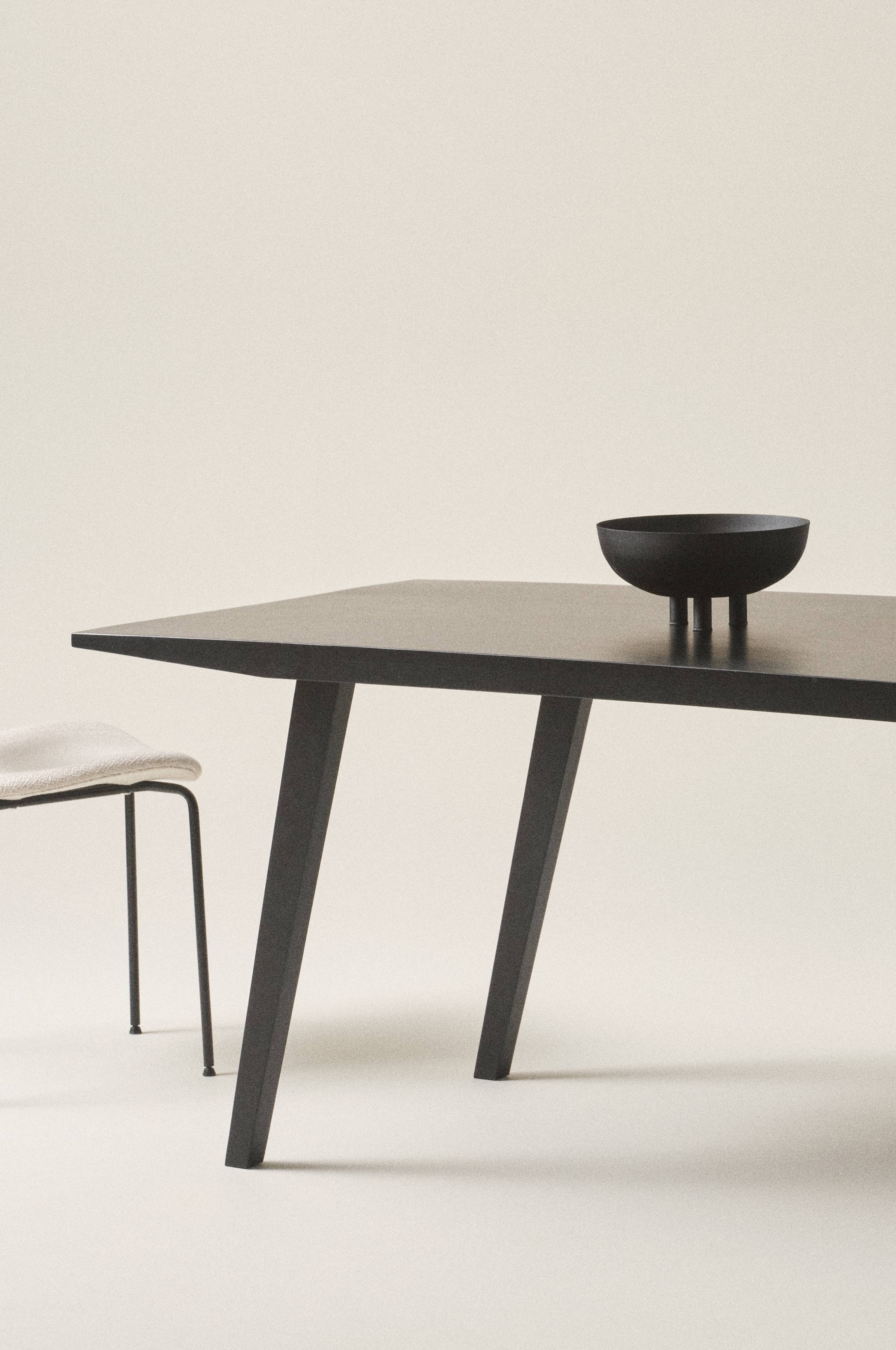 Rechteckiger Esstisch aus massivem Mangoholz mit lackierter Oberfläche. Das schnörkellose Design von TORUP erhält durch feine Details das gewisse Etwas. Das schwarze Finish verleiht dem Tisch einen coolen Charakter. Bei der Tischplatte bezaubert die hübsch geformte Unterkante, die geschmackvoll mit den ausgestellten eckigen Beinen korrespondiert. Letzteres schafft Raum und sorgt dafür, dass alle am Tisch mehr Beinfreiheit haben. Einige Montageschritte sind erforderlich. Inklusive Montageanleitung.