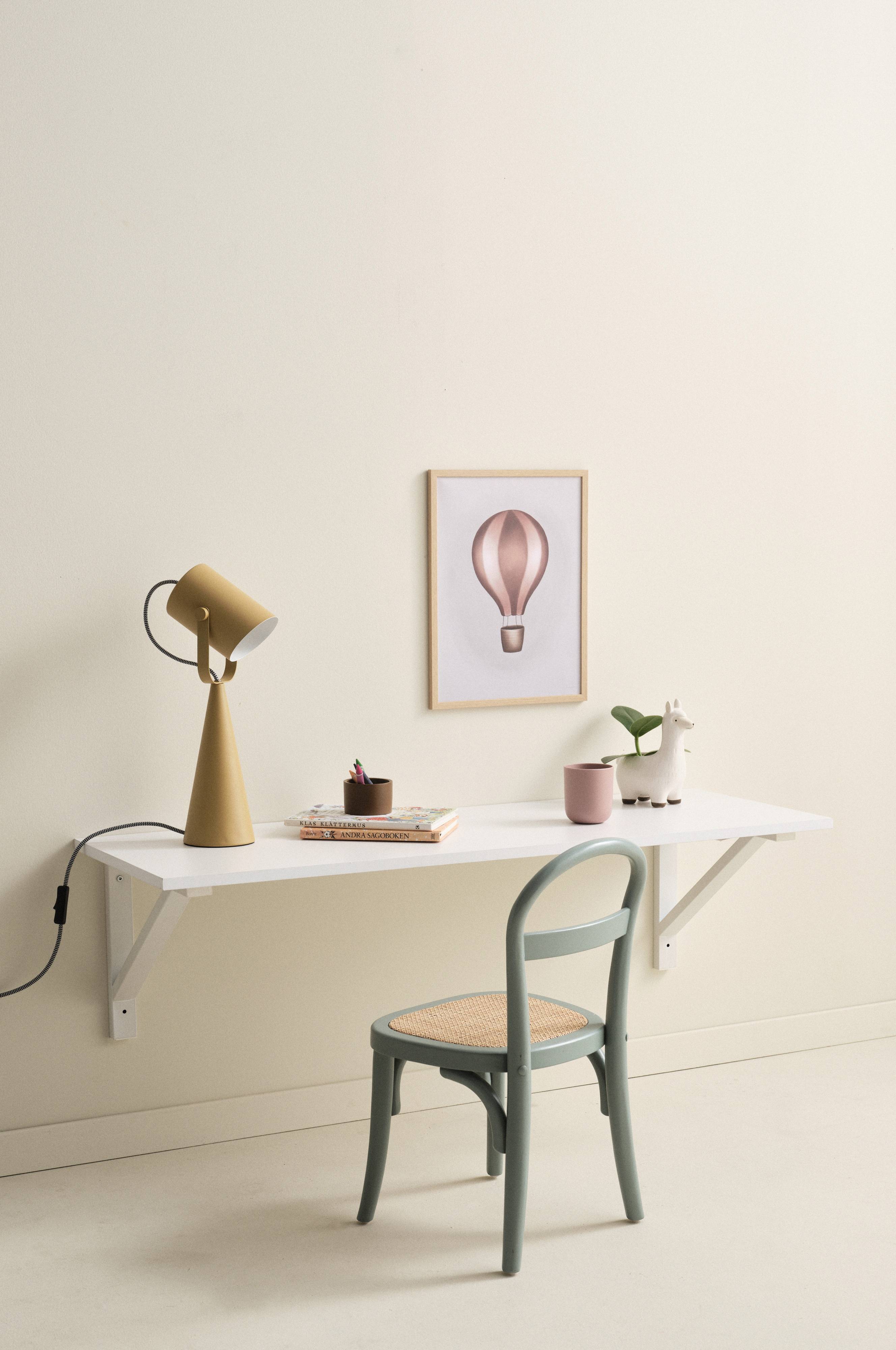 Wandmontierter Schreibtisch mit Tischplatte aus MDF und zwei Konsolen aus Stahl. Das praktische Modell wird in der gewünschten Höhe an der Wand befestigt. Mit einem bequemen Stuhl davor ist rasch ein praktischer, unkomplizierter Platz für die Hausaufgaben oder das Homeoffice eingerichtet. Die Konsolen sind in farblich passender Farbe pulverbeschichtet. Einige Montageschritte sind erforderlich. Inklusive Montageanleitung.
