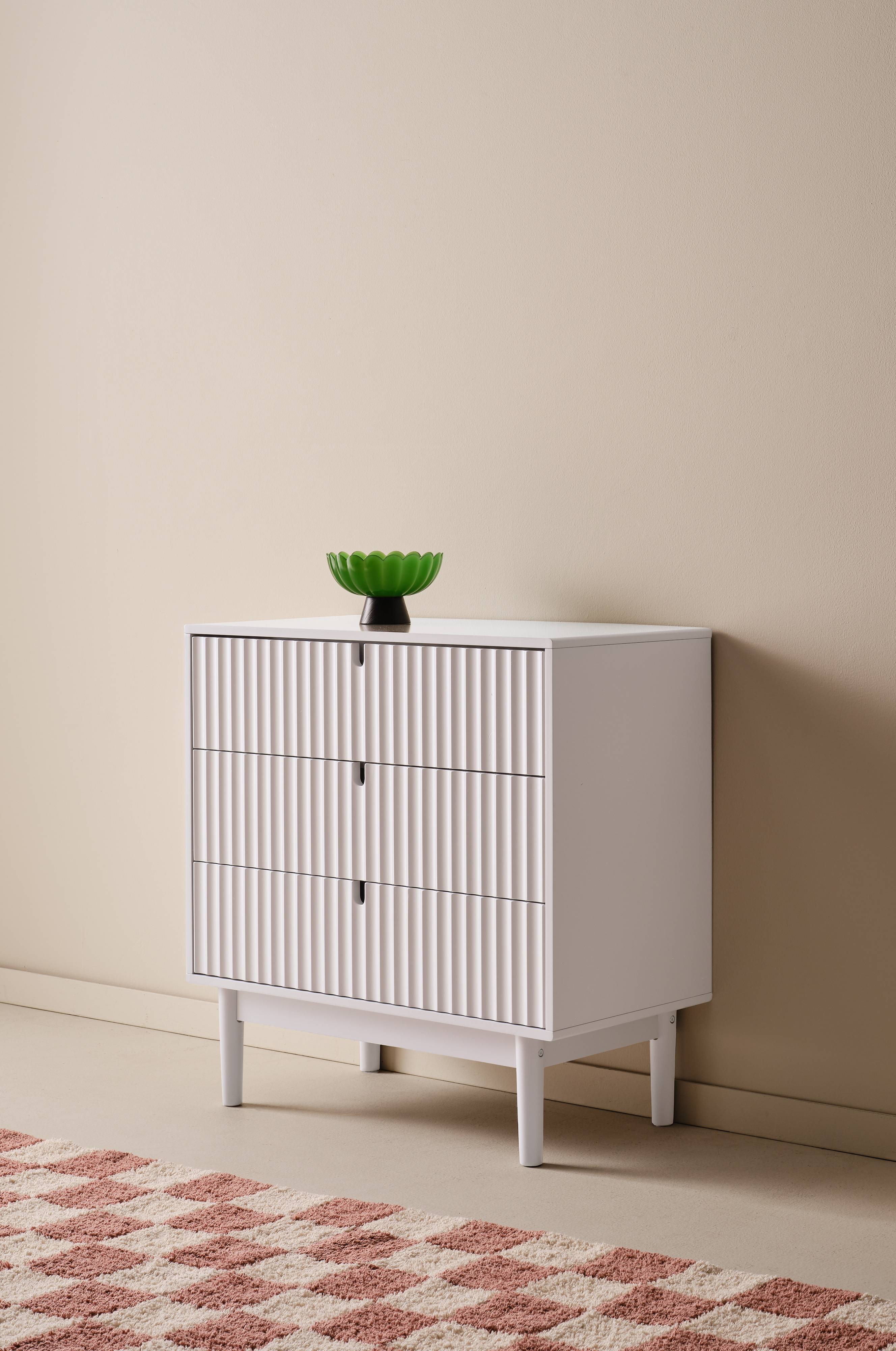 TOULUSE ist eine attraktive Möbelserie aus FSC-gekennzeichneter Kiefer und MDF. Die wellenförmige Front ist ein charakteristisches Merkmal und schönes Detail, das dieser Serie und einen Hauch von Retro verleiht. Die runden, geraden Beine unterstreichen den Nostalgielook zusätzlich. Lack auf Wasserbasis sorgt für eine angenehm weiche Oberfläche. Einige Montageschritte sind erforderlich. Eine Montageanleitung ist beigepackt.