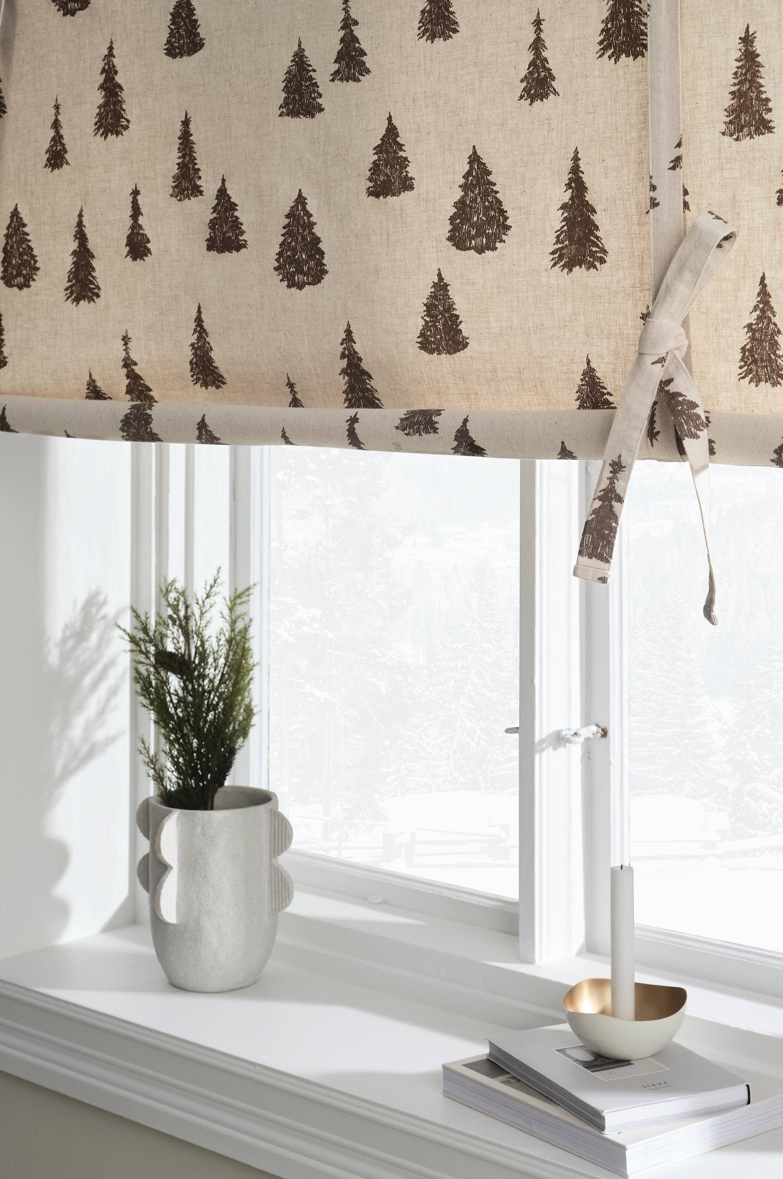 Diese Rollgardine ist Teil unseres Programms TREES, das stückgewaschene und damit wunderbar weiche Produkte aus Baumwolle und Leinen umfasst. Dank seiner Naturbetontheit und der auf ungefärbtem Untergrund gezeichneten Tannen kann sich TREES super das ganze Jahr über sehen lassen - wenn es nicht gerade harmonische Weihnachtsstimmung verströmt. Aufhängung an einer normalen Gardinenstange. Per Bindeband verstellbare Höhe. Stoffgewicht 210 g/m².