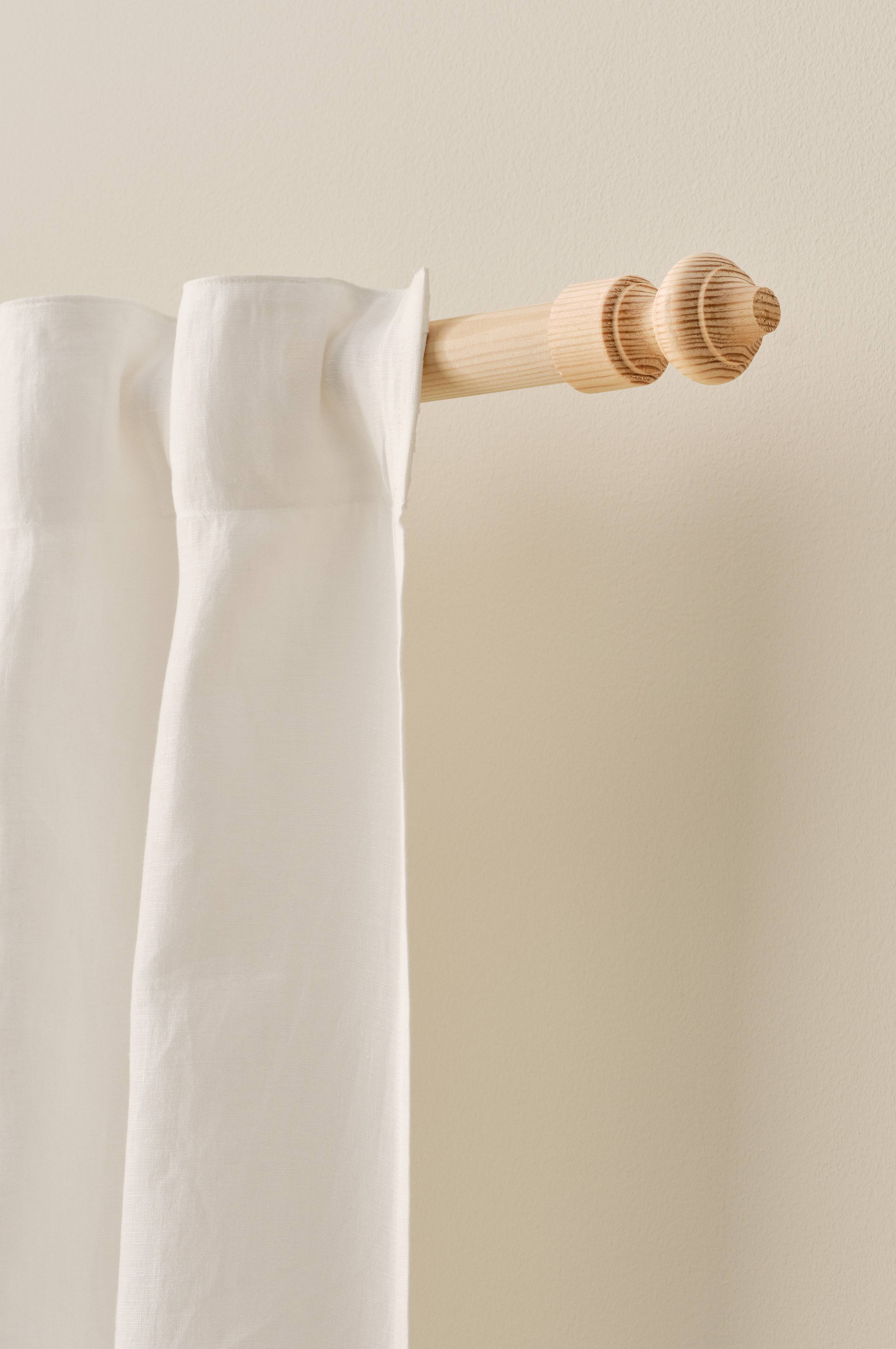 Die Vorhangstangen aus Kiefernholz, TRUDE, verleihen jedem Zuhause einen Hauch von Vintage. Unbehandeltes Holz bietet einen rohen, natürlichen Charme. Perfekt, um deiner Inneneinrichtung einen eleganten Touch zu verleihen. Lässt sich leicht mit verschiedenen Gardinenstilen kombinieren. Schaffe einen zeitlosen Look, der gleichzeitig schlicht und majestätisch ist.