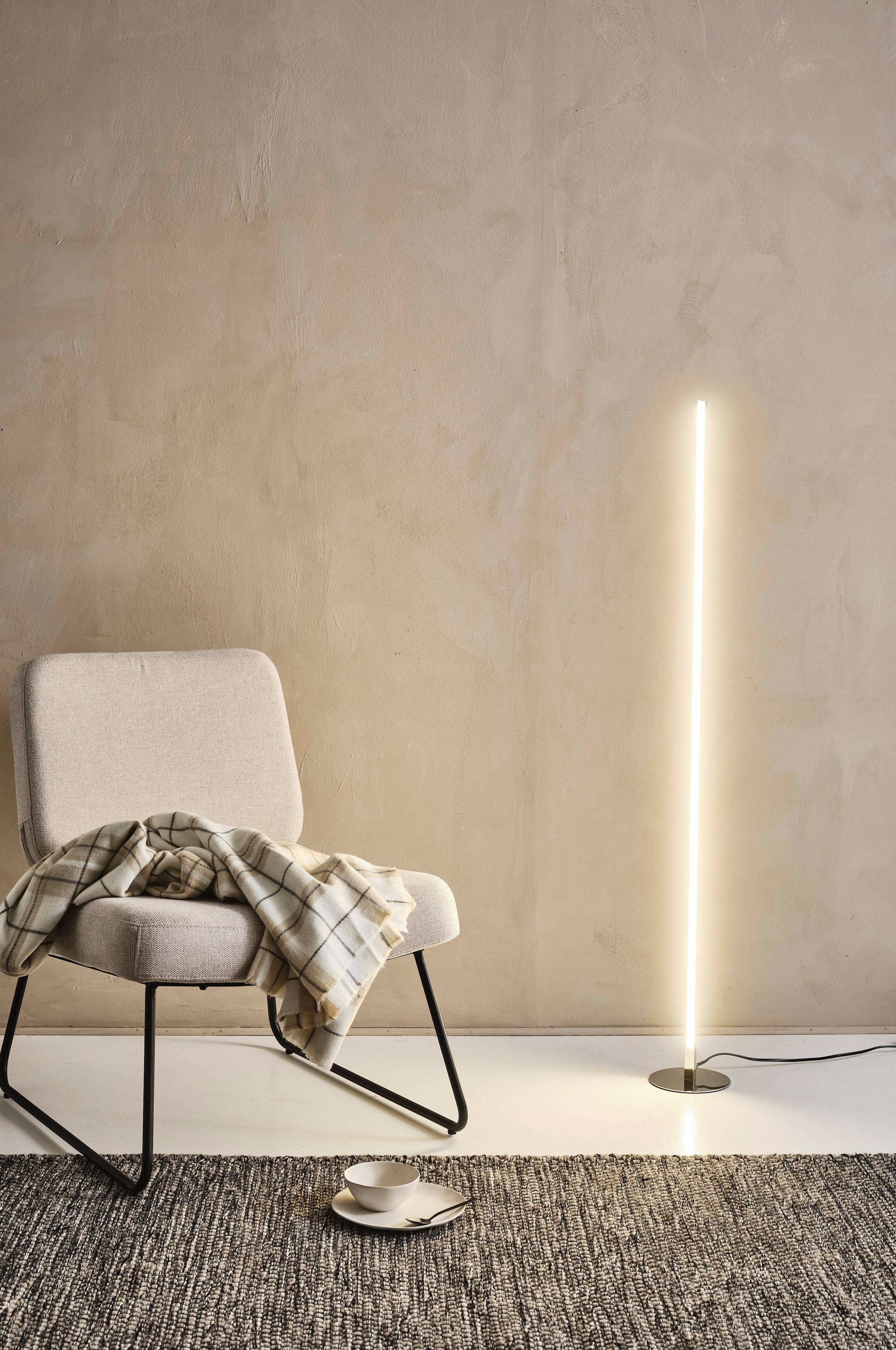 Stehlampe aus Chrom mit LED-Leuchtmittel, ein Modell in minimalistischer Luxus-Optik. 1,8 m Kabel mit Dimmer.