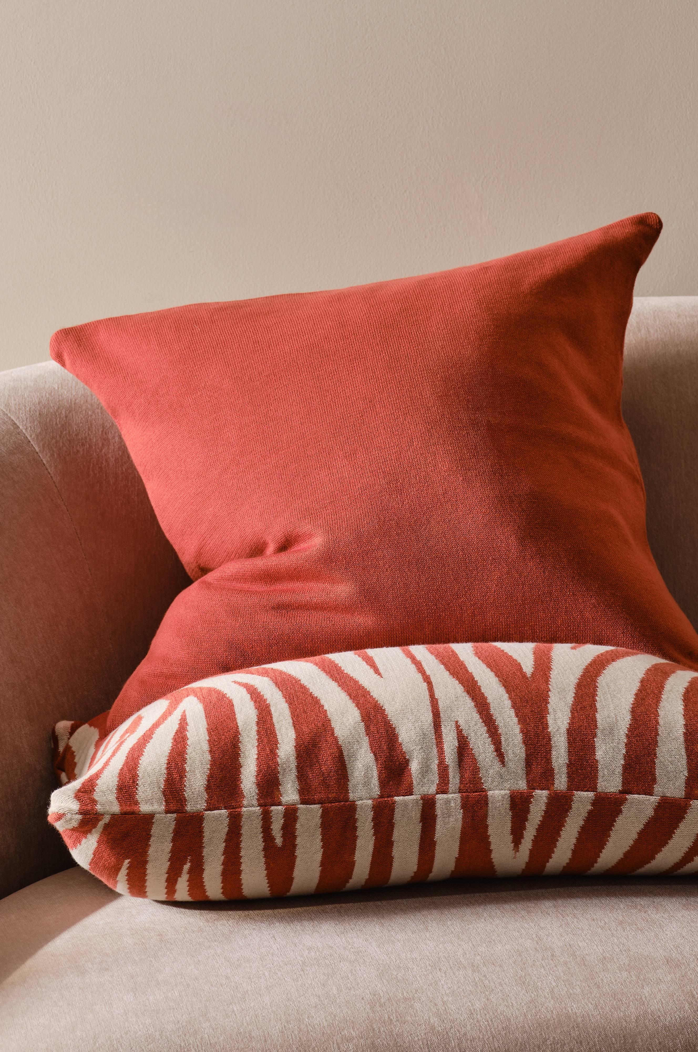 Der Kissenbezug ZIA sorgt mit seinem Zweier-Set mit einzigartigen Mustern für einen trendigen Twist bei der Innenraumgestaltung. Das aus ökologischer Baumwolle gestrickte Set besteht aus einem Bezug mit Zebramuster und einem unifarbenen Bezug, die jedem Raum ein besonderes Flair verleihen.