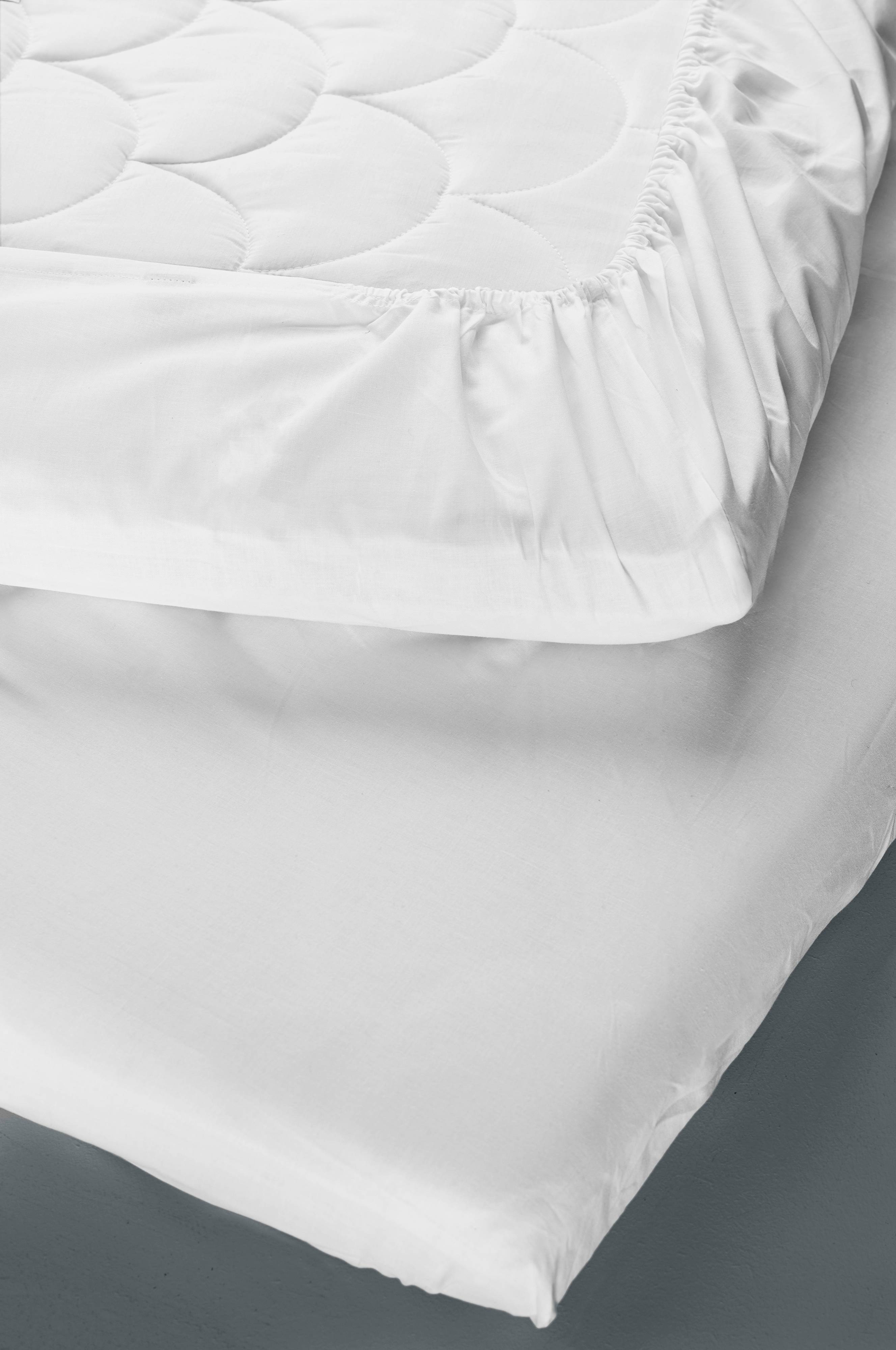 Einfarbiges Spannbettlaken aus angenehm weicher Baumwolle mit Gummizügen. Dank Gummizug schmiegt sich das Laken perfekt um die Matratze. Fadendichte 144 TC. (Mit der Fadendichte bzw. dem TC-Wert (Thread Count) wird die Anzahl der Fäden in Kette und Schuss pro Quadratzoll angegeben. Je höher die Fadendichte, desto höher die Qualität.)